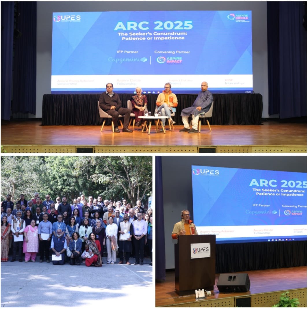 अस्पायर रिट्रीट और कॉनवोकेशन (ARC ), अस्पायर सर्कल का द्विवार्षिक प्रमुख आयोजन है – जो भारत में उद्देश्यपूर्ण नेतृत्व और सामाजिक प्रभाव के लिए अग्रणी मंच है। UPES विश्वविद्यालय के सहयोग से आयोजित ARC – 25 में तीन दिनों तक 100 से अधिक फेलोज़, परिवर्तनकारी विचारकों और चिंतनशील नेताओं ने भाग लिया। कार्यक्रम में गहन संवाद, प्रेरक पठन सत्र, नेतृत्व पैनल और सांस्कृतिक प्रस्तुतियाँ शामिल रहीं – जिनका उद्देश्य था ‘प्रबुद्ध सामाजिक नेतृत्व’ की भावना को आगे बढ़ाना। इस रिट्रीट के अंतर्गत अस्पायर फेलोज़ के दीक्षांत समारोह का भी आयोजन किया गया, जिसमें उनके वर्षभर के दार्शनिक शिक्षण और प्रभावशाली सहयोग के सफर का उत्सव मनाया गया।