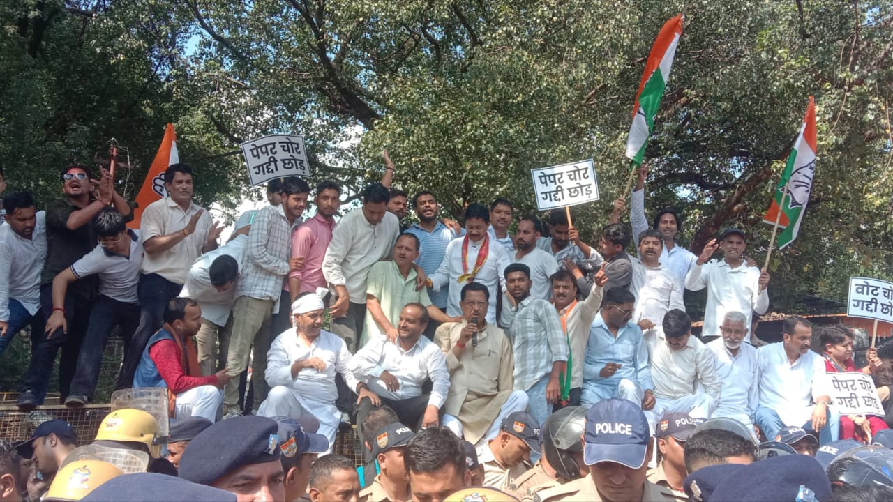 देहरादून: बीती २१ सितंबर को संपन्न यूके ट्रिपल एससी परीक्षा पेपर लीक मामले की जांच, हाई कोर्ट के सिटिंग जज की निगरानी में सीबीआई से कराए जाने, लीक हुई परीक्षा को रद्द कर नई परीक्षा तिथि घोषित करने व यूके ट्रिपल एससी अध्यक्ष गणेश सिंह मर्तोलिया को बर्खास्त करने की मांग को लेकर अपने पूर्व घोषित मुख्यमंत्री आवास कूच के कार्यक्रम के तहत आज प्रातः हजारों की संख्या में कांग्रेस कार्यकर्ता प्रदेश कांग्रेस मुख्यालय राजीव भवन में एकत्रित हुए और प्रदेश अध्यक्ष करण माहरा, पूर्व अध्यक्ष गणेश गोदियाल, पूर्व अध्यक्ष प्रीतम सिंह, पूर्व मुख्यमंत्री हरिश रावत, एआईसीसी सचिव काज़ी निजामुद्दीन व अनेक विधायकों पूर्व मंत्री व पूर्व विधायकों के नेतृत्व में दोपहर साढ़े बारह बजे मुख्यमंत्री आवास की ओर बड़े। पार्टी कार्यकर्ता पेपर चोर गद्दी छोड़ वोट चोर गद्दी छोड़ के नारे लगाते हुए राजपुर रोड पर हाथों में सरकार विरोधी तख्तियां ले कर बहल चौक, दिलाराम बाजार होते हुए कैंट रोड से सीधे मुख्यमंत्री आवास की ओर बड़े। कैंट रोड पर पुलिस चौकी के पास लगे बैरिकेडिंग के पास पहुंचते ही कार्यकर्ता जोरदार नारे लगाते हुए प्रदेश अध्यक्ष करण माहरा पूर्व अध्यक्ष गणेश गोदियाल और प्रदेश उपाध्यक्ष संगठन सूर्यकांत धस्माना के नेतृत्व में मुख्यमंत्री आवास जाने के लिए बैरिकेडिंग पर चढ़ गए, काफी धक्का मुक्की के बाद प्रदेश कांग्रेस उपाध्यक्ष धस्माना ने बैरिकेडिंग से ही जन सभा शुरू कर दी। पार्टी कार्यकर्ताओं को संबोधित करते हुए प्रदेश अध्यक्ष करण माहरा ने धामी सरकार पर राज्य के नौजवानों व बेरोजगारों को धोखा देने का आरोप लगाते हुए कहा कि प्रदेश का नौजवान जो पिछले साढ़े आठ सालों से रोजगार की तलाश में दर दर भटक रहा है आज इस बात से निराश हताश और आक्रोशित है कि प्रदेश में एक तो सारी भर्तियां बंद हैं और जो कुछ थोड़ी बहुत भर्तियां निकलती हैं उनकी परीक्षा के पेपर खुले आम नीलाम हो जाते हैं और नीलाम करने वाले कहीं ना कहीं भाजपा से जुड़े लोग होते हैं चाहे वो हाकम सिंह हो या वो संजय धारीवाल या धर्मेंद्र सिंह चौहान हों। करण माहरा ने कहा कि विगत इकीस सितंबर को यूके ट्रिपल एससी परीक्षा पेपर लीक के बाद से कांग्रेस लगातार आंदोलन कर रही है और हमारी साफ साफ मांग है कि इस पेपर लीक की जांच हाई कोर्ट के सिटिंग जज की निगरानी में सीबीआई से करवाई जाए क्योंकि केवल सीबीआई जांच काफी नहीं उसकी निगरानी होनी चाहिए। उन्होंने कहा कि जिस अध्यक्ष के रहते पेपर लीक हुआ और जो तीन दिनों तक पेपर लीक स्वीकार हो नहीं कर रहे थे वो आज भी अपने पद पर बने हुए हैं तो उनके रहते निष्पक्ष जांच कैसे हो सकती है। श्री माहरा ने कहा कि सरकार यूके ट्रिपल एससी अध्यक्ष गण