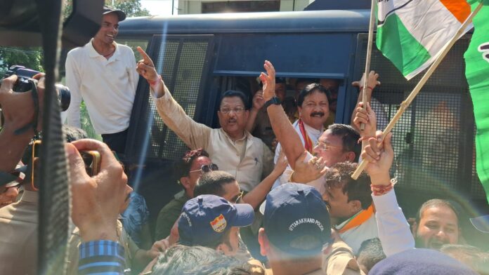 मुख्यमंत्री आवास कूच करते प्रदेश कांग्रेस अध्यक्ष करण माहरा,पूर्व अध्यक्ष प्रीतम सिंह, गणेश गोदियाल, काज़ी निजामुद्दीन सूर्यकांत धस्माना समेत सैकड़ों कांग्रेसी गिरफ्तार