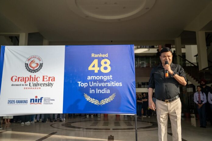 केंद्र सरकार के शिक्षा मंत्रालय ने आज वर्ष 2025 की एनआईआरएफ रैंकिंग जारी कर दी है। इसमें ग्राफिक एरा डीम्ड यूनिवर्सिटी को देश भर के विश्वविद्यालयों में 48वीं रैंक दी गई है। पिछले साल ग्राफिक एरा केंद्र सरकार की इस रैंकिंग में देश में 52वें स्थान पर था।