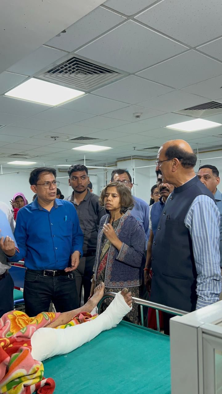निरीक्षण के दौरान माननीय मंत्री ने उपचाराधीन जनों से मिलकर उनके हाल-चाल जाने तथा उन्हें उपलब्ध कराई जा रही स्वास्थ्य सेवाओं की गुणवत्ता की जानकारी प्राप्त की। उन्होंने रोगियों एवं उनके परिजनों से संवाद कर अस्पताल में मिल रही सुविधाओं पर फीडबैक भी लिया।