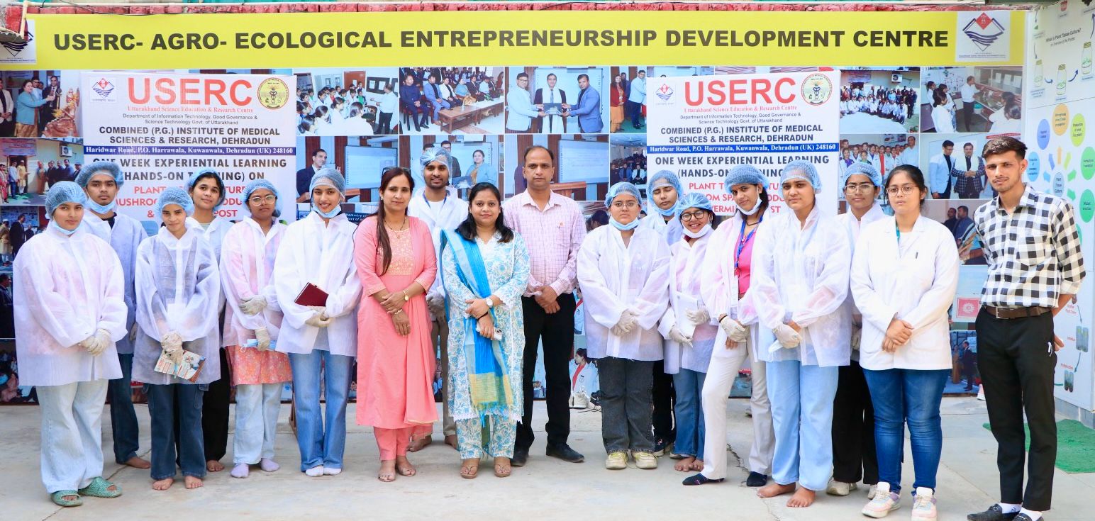 सीआइएमएस एंड यूआइएचएमटी ग्रुप आफ कालेज के चेयरमैन ललित मोहन जोशी ने अतिथियों का स्वागत किया। उन्होंने कार्यक्रम आयोजित करने के लिए यूसर्क का आभार जताया। विशिष्ट अतिथि एफआरआइ की वैज्ञानिक डा. मोनिका चौहान ने प्रशिक्षुओं को प्लांट टिश्यू कल्चर, मशरूम स्पॉन उत्पादन, वर्मी कम्पोस्ट के बारे में विस्तृत जानकारी दी। इस दौरान सीआइएमएस कॉलेज आफ पैरामेडिकल के प्रधानाचार्य डा. केएस नेगी, केंद्र समन्वयक डा. रजीत कुमार सिंह, सह समन्वयक डा. दीपिका विश्वास, कमल जोशी आदि मौजूद थे।