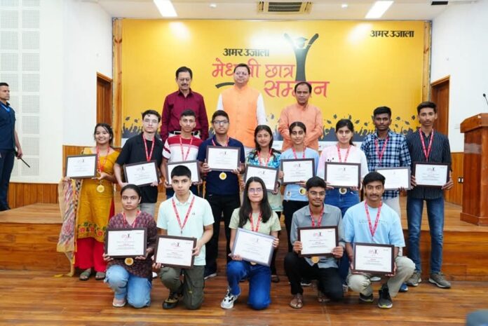 देहरादून । मुख्यमंत्री पुष्कर सिंह धामी ने आज मुख्यमंत्री आवास स्थित मुख्य सेवक सदन में मेधावी छात्र सम्मान समारोह में उत्तराखंड माध्यमिक शिक्षा बोर्ड के हाई स्कूल और इंटरमीडिएट के 75 मेधावी छात्र-छात्राओं को सम्मानित किया। अमर उजाला समाचार पत्र द्वारा आयोजित इस कार्यक्रम में मुख्यमंत्री ने कहा कि सम्मान समारोह के माध्यम से प्रतिवर्ष हमारे राज्य के प्रतिभावान छात्रों को सम्मानित कर उनका उत्साहवर्धन किया जाता है ।