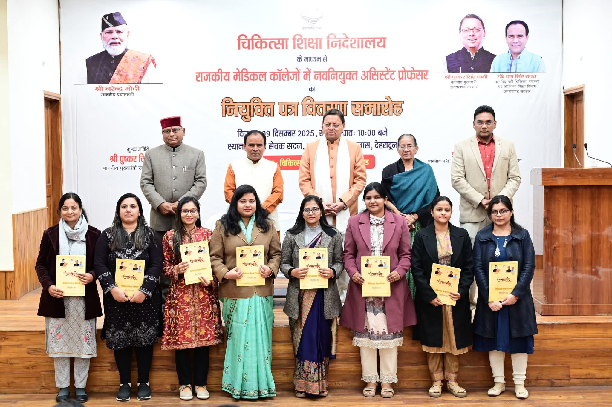 देहरादून। मुख्यमंत्री पुष्कर सिंह धामी ने आज मुख्य सेवक सदन, देहरादून में आयोजित कार्यक्रम में प्रतिभाग करते हुए चिकित्सा सेवा चयन बोर्ड के माध्यम से चयनित राजकीय मेडिकल कॉलेजों में 142 असिस्टेंट प्रोफेसर्स को नियुक्ति पत्र वितरित किए।