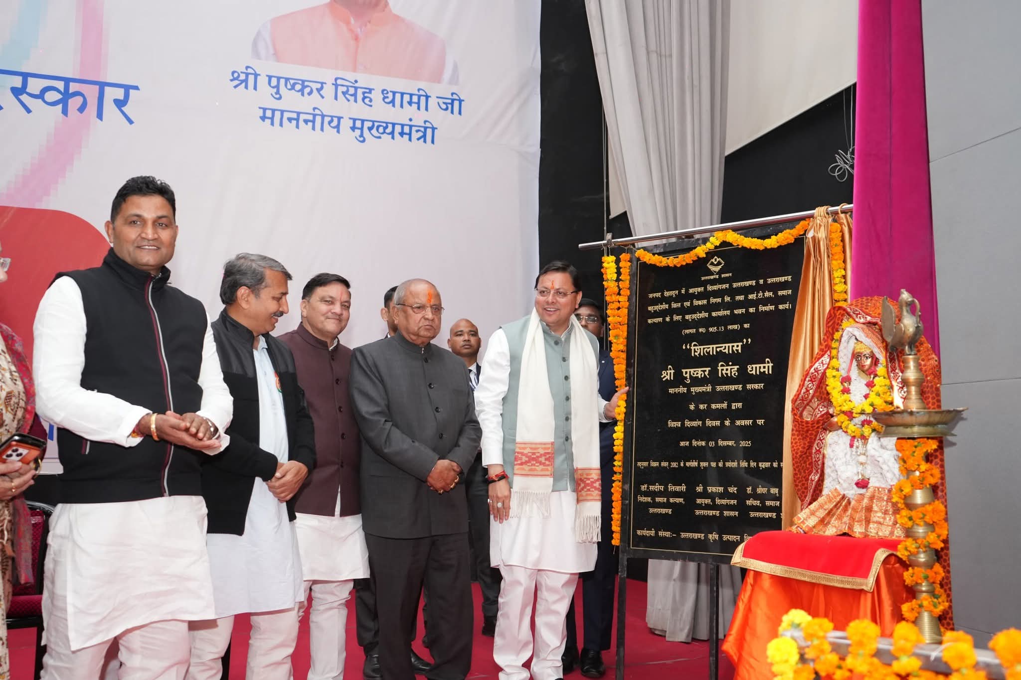 इस अवसर पर मुख्यमंत्री ने देहरादून में ₹905.13 लाख की लागत से बनने वाले आयुक्त दिव्यांगजन उत्तराखण्ड, उत्तराखण्ड बहुउद्देशीय वित्त एवं विकास निगम लिमिटेड तथा समाज कल्याण आईटी सेल के बहुउद्देशीय कार्यालय भवन का शिलान्यास तथा प्रधानमंत्री दिव्याशा केंद्र, नैनीताल (एलिम्को) का लोकार्पण किया।
