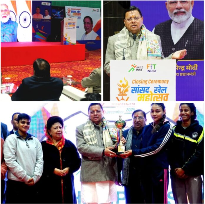 मुख्यमंत्री श्री पुष्कर सिंह धामी ने गुरूवार को तिब्बती मार्केट, देहरादून स्थित ओल्ड मल्टीपरपज हॉल में सासंद खेल महोत्सव-2025 के समापन समारोह कार्यक्रम में प्रतिभाग किया। इस अवसर पर उन्होंने विभिन्न खेल स्पर्धाओं में विजेता टीम को सम्मानित भी किया।