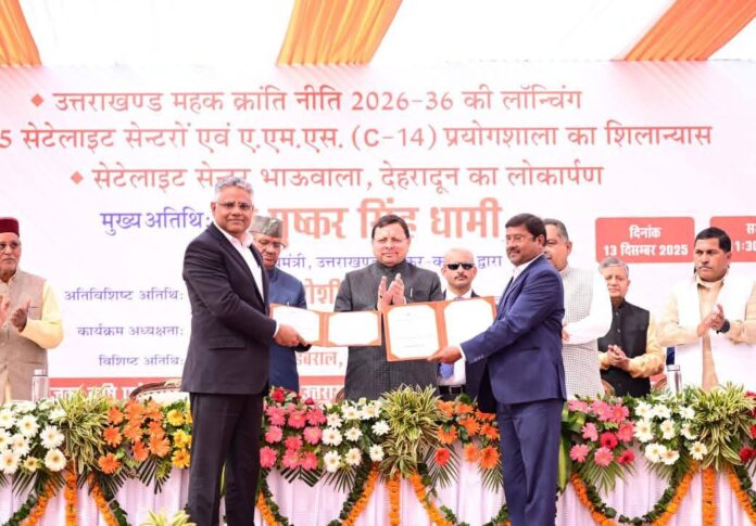 देहरादून। मुख्यमंत्री पुष्कर सिंह धामी ने शनिवार को सगन्ध पौधा केन्द्र, सेलाकुई, देहरादून में आयोजित कार्यक्रम में प्रतिभाग करते हुए उत्तराखण्ड महक क्रांति नीति-2026-36 का शुभारम्भ किया। उन्होंने सेटेलाइट सेन्टर भाऊवाला का लोकार्पण एवं सगन्ध पौधा केन्द्र, सेलाकुई स्थित ए.एम.एस (C-14) प्रयोगशाला का भी शिलान्यास किया। इस दौरान मुख्यमंत्री ने कुल 5 सेटेलाइट सेन्टरों का भी शिलान्यास किया। यह सेटेलाइट सेंटर – परसारी ( चमोली ), रैथल ( उत्तरकाशी), भैसोड़ी ( अल्मोड़ा), खतेड़ा ( चंपावत) एवं विषाड ( पिथौरागढ़) में स्थापित किए जाएंगे।