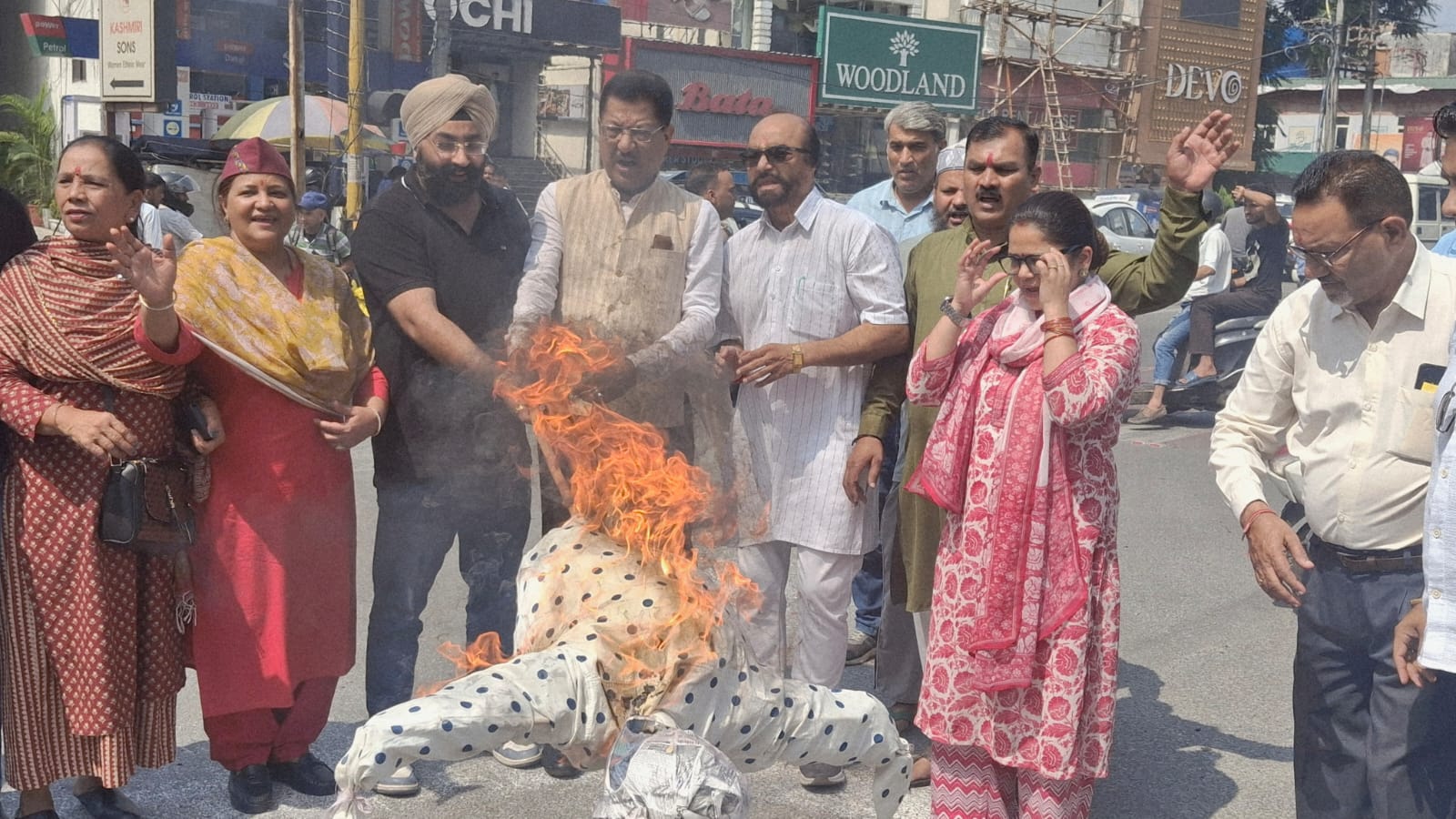प्रदर्शन के पश्चात कांग्रेस कार्यकर्ताओं ने क्वालिटी चौक पर प्रदेश सरकार के पुतले को आग के हवाले कर दिया।