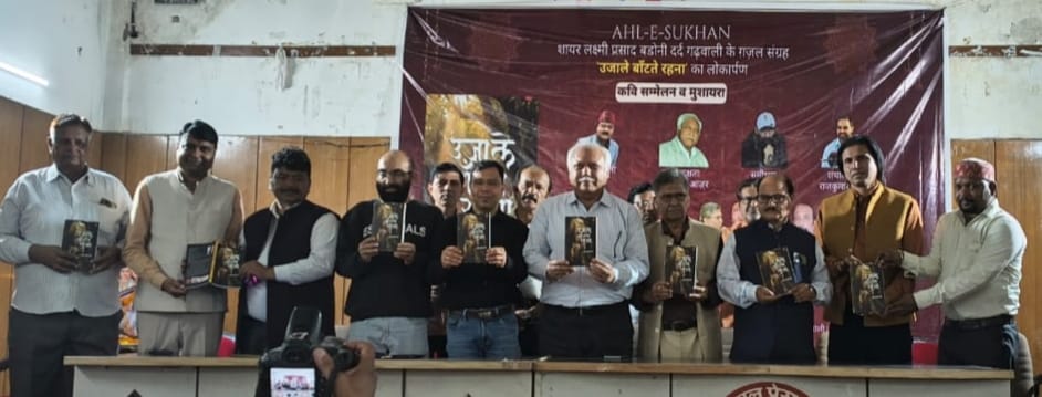 देहरादून: वरिष्ठ पत्रकार एवं शायर दर्द गढ़वाली के ग़ज़ल संग्रह ‘उजाले बांटते रहना’ का गुरुवार को उत्तरांचल प्रेस क्लब के सभागार में लोकार्पण किया गया। कार्यक्रम अध्यक्ष एवं प्रख्यात शायर इक़बाल आज़र, मुख्य अतिथि विजय कुमार ‘द्रोणी’, नवीन नीर, प्रेस क्लब अध्यक्ष भूपेंद्र कंडारी, श्रीकांत श्री, जनकवि डॉ. अतुल शर्मा, सुनील साहिल, बादल बाजपुरी और राजकुमार राज़ ने ग़ज़ल संग्रह का लोकार्पण किया।