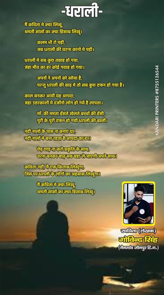 लेकिन युवा लेखक गोविंद रावत ने इस पीड़ा को अपनी लेखनी के माध्यम से उजागर करने का प्रयास किया है। उनकी कविता न केवल संवेदना व्यक्त करती है, बल्कि उन सभी लोगों के प्रति एक श्रद्धांजलि भी है जो इस त्रासदी से प्रभावित हुए हैं।