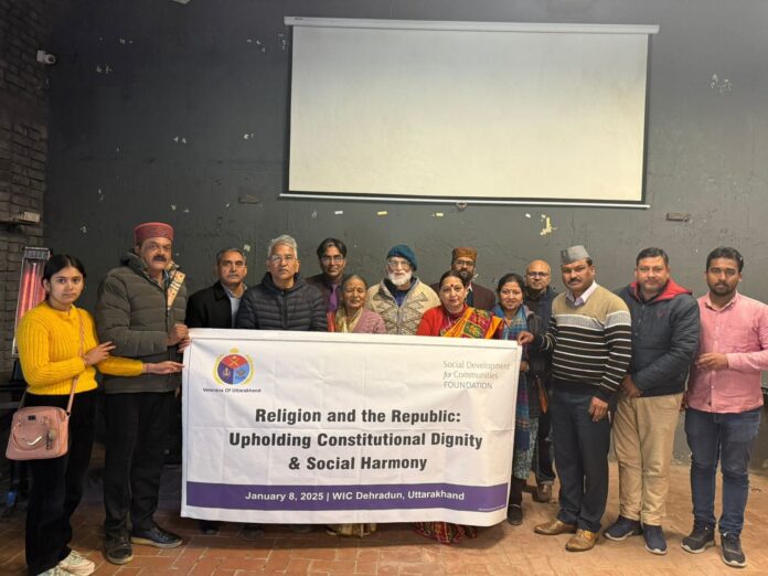चर्चा का उद्देश्य समाज में बढ़ते ध्रुवीकरण के बीच संवाद, आपसी समझ और संवैधानिक मूल्यों को मजबूत करना रहा। ब्रिगेडियर सर्वेश दत्त (पहाड़ी) डंगवाल और सामाजिक कार्यकर्ता अनूप नौटियाल विमर्श के सह-संयोजक थे।