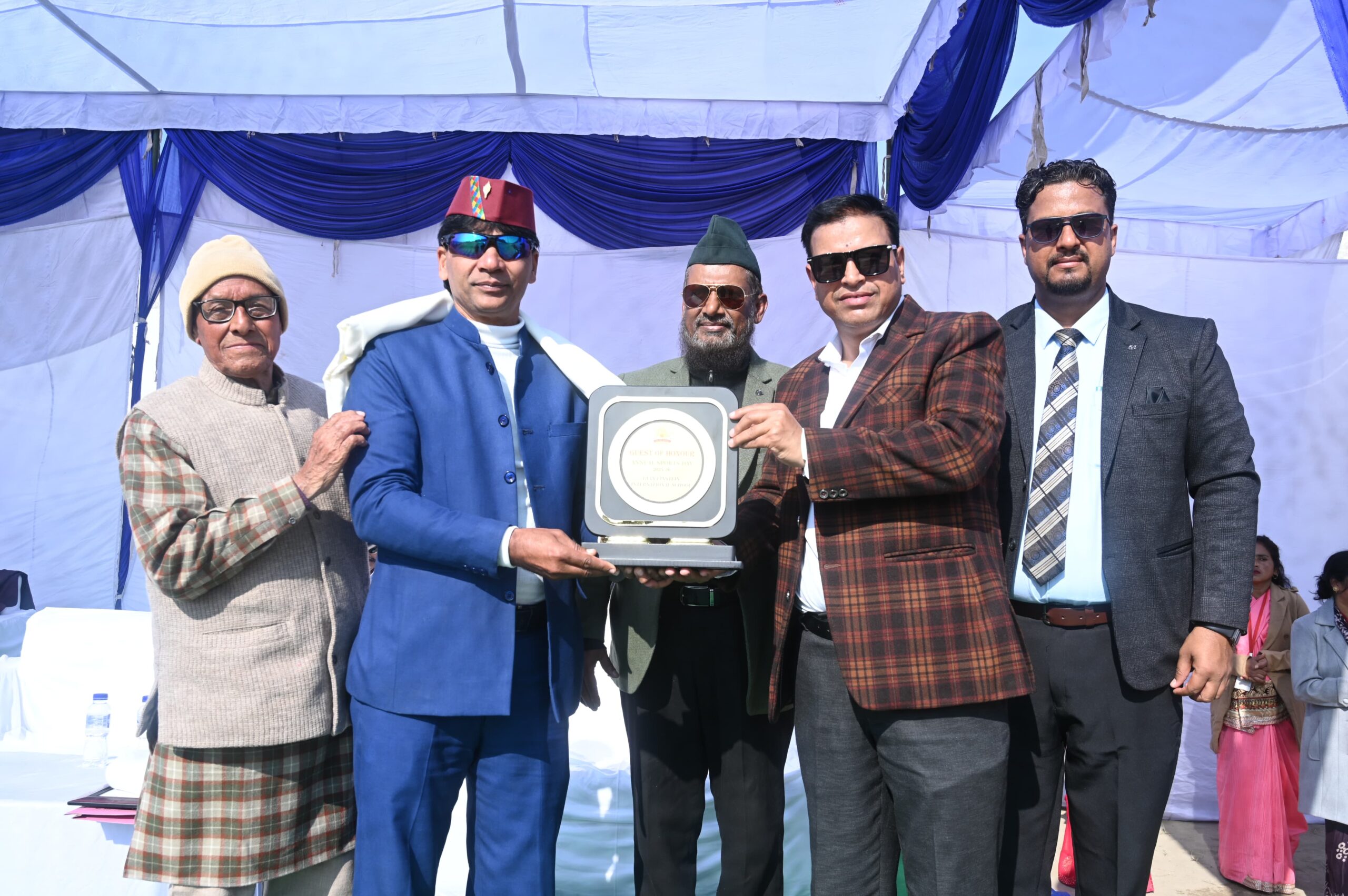स्कूल के चेयरमैन सेमवाल जी द्वारा डॉ विरेन्द्र सिंह रावत को राज्य खेल फुटबाल मे 27 सालों से उचित कार्य करने पर सम्मानित किया