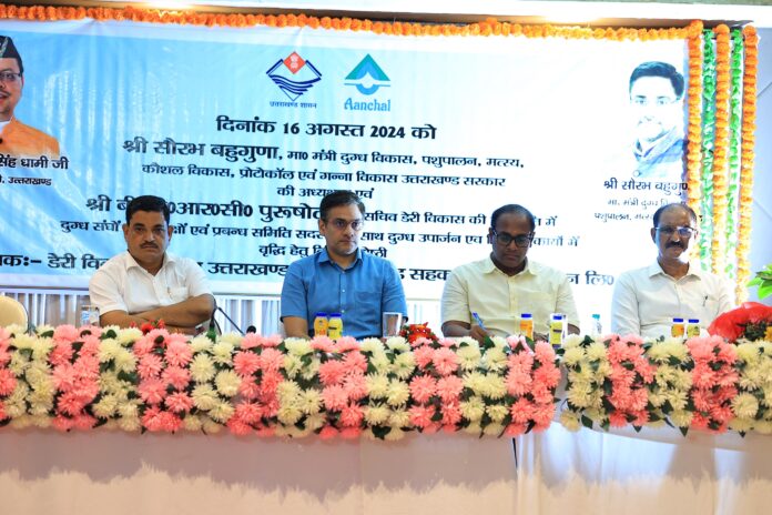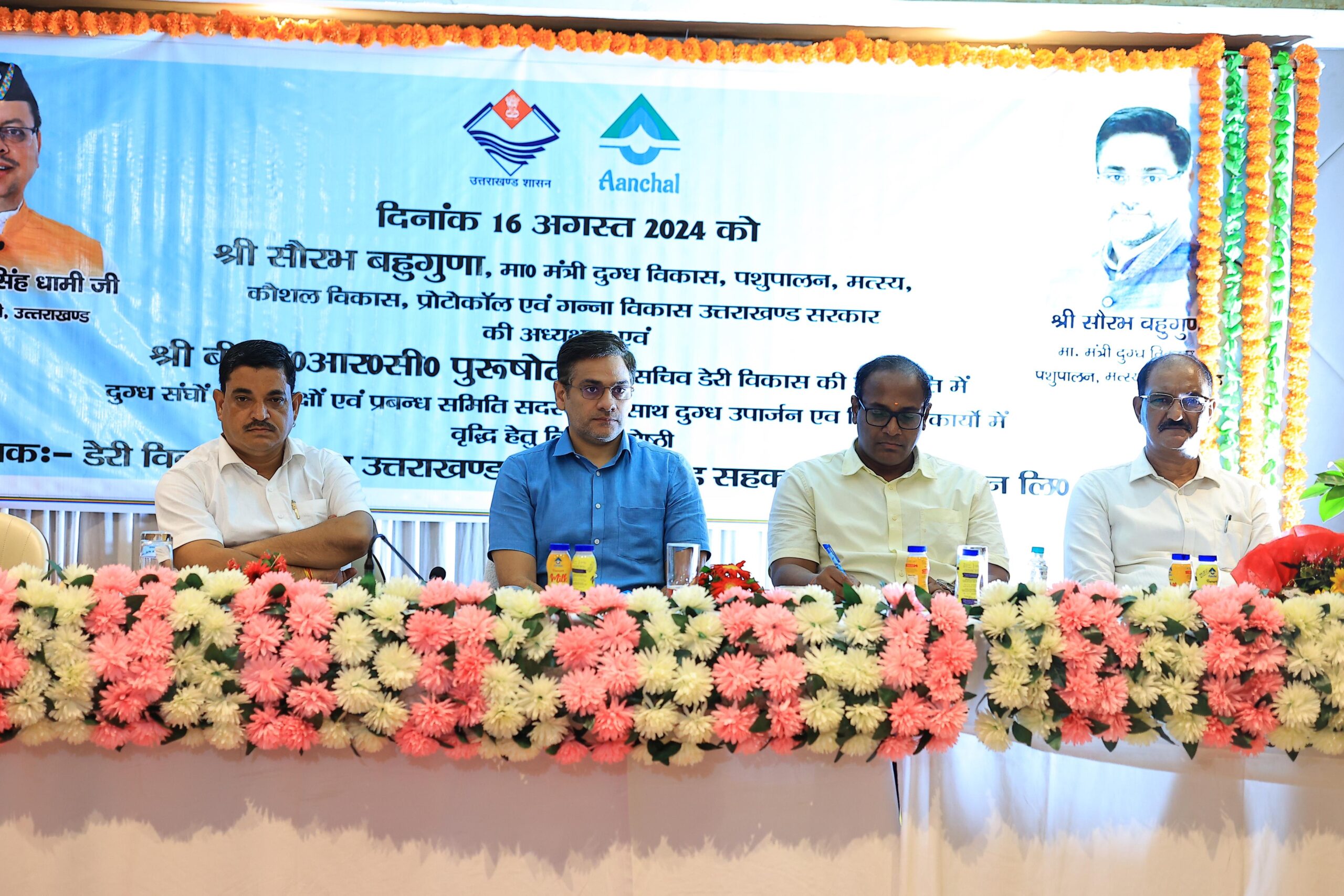 आज दिनांक 16.08.2024 को मा० मंत्री जी, पशुपालन, मत्स्य, दुग्ध विकास, गन्ना विकास एवं चीनी उद्योग, प्रोटोकोल एवं कौशल विकास एवं सेवायोजन, उत्तराखण्ड सरकार की अध्यक्षता में दुग्ध उपार्जन एवं विपणन में वृद्धि करने तथा दुग्ध संघों के ओवर हैड व्ययों में कमी करने के उददेश्य से देहरादून के सहस्त्रधारा रोड स्थित होटल सफायर में एक समीक्षा बैठक / गोष्ठी आयोजित की गयी| जिसमे डा० बी०वी०आर०सी०पुरूषोत्तम, सचिव, डेरी, अपर सचिव, संयुक्त सचिव, डेरी, उत्तराखण्ड शासन, प्रदेश अन्तर्गत संचालित समस्त दुग्ध संघों के सभापति, उपसभापति एवं प्रबन्ध समिति के सदस्य, प्रबन्ध निदेशक, यू०सी०डी०एफ०, प्रशासक यू०सी०डी०एफ०, प्रदेश के समस्त दुग्ध संघों के प्रबन्धक / प्रधान प्रबन्धक तथा विभागीय अधिकारियों द्वारा प्रतिभाग किया गया।