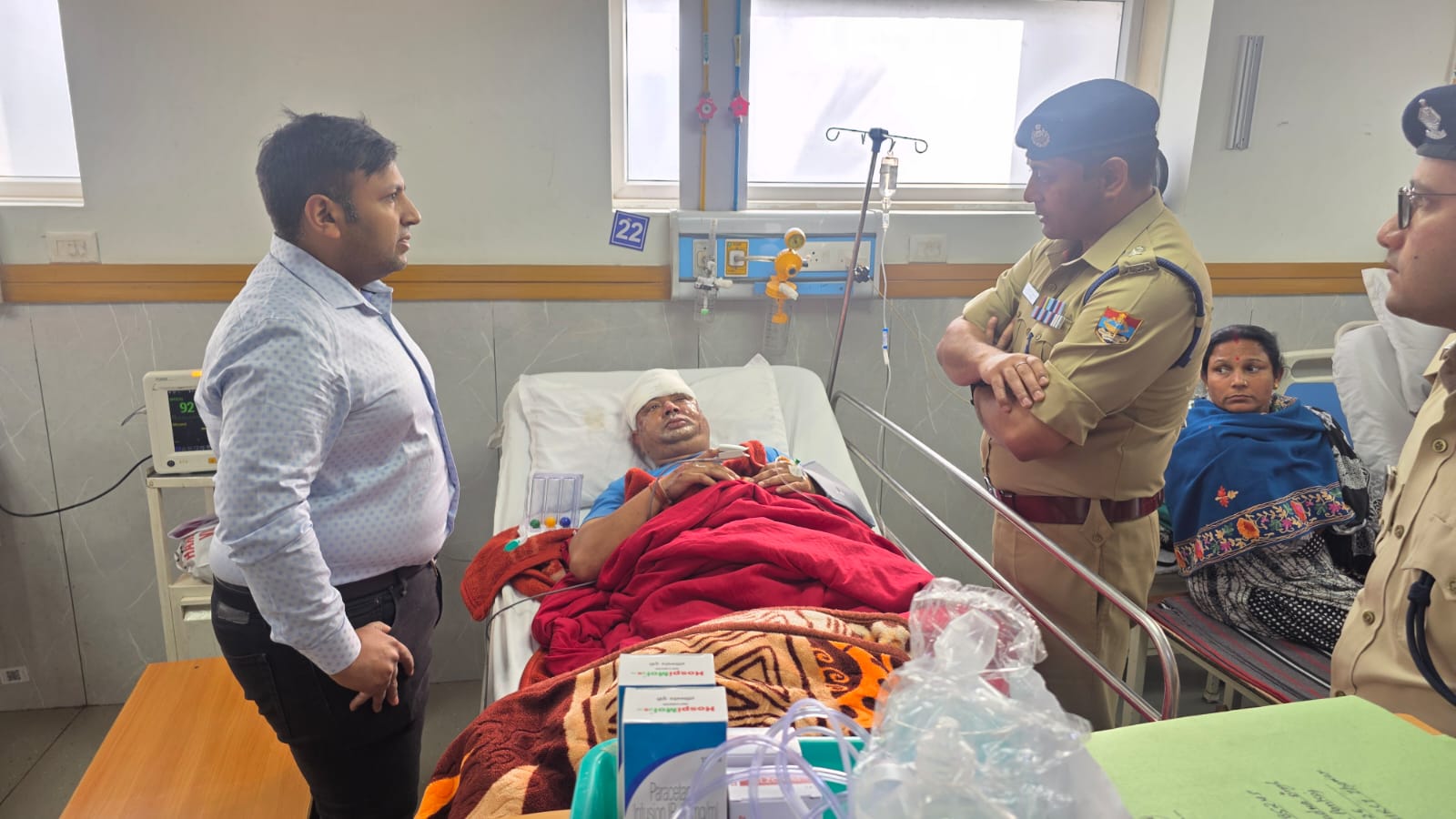 आज दिनाँक 08/04//2026 को वरिष्ठ पुलिस अधीक्षक देहरादून द्वारा महंत इंद्रेश अस्पताल में जाकर घायल पुलिस कर्मी का उपचार कर रहे डाक्टरों से वार्ता कर उनसे उनके स्वास्थ के सम्बन्ध में जानकारी प्राप्त की गयी, साथ ही उन्हें बेहतर से बेहतर उपचार उपलब्ध कराये जाने हेतु उपस्थित अधिकारियों को निर्देश दिये गये। इस दौरान एसएसपी देहरादून द्वारा घायल पुलिस कर्मी से मुलाकात कर उनकी कुशलक्षेम पूछी तथा उन्हें व उनके परिजनों को बेहतर उपचार के लिये हर सम्भव सहायता का भरोसा दिलाया।
