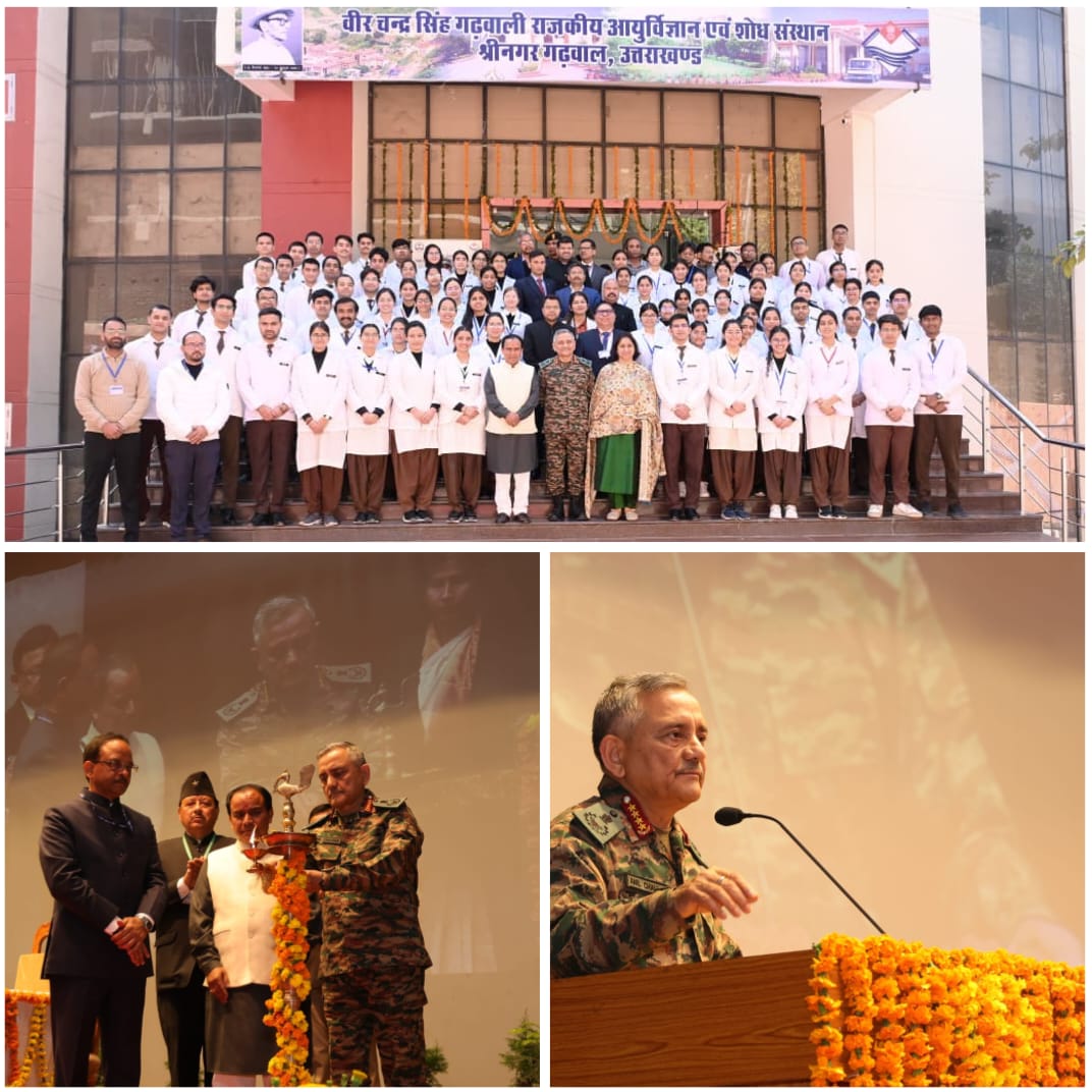 स्वास्थ्य एवं उच्च शिक्षा मंत्री डॉ. धन सिंह रावत ने अपने संबोधन में कहा कि गढ़वाल विश्वविद्यालय के लिए यह ऐतिहासिक अवसर है जब देश के शीर्ष सैन्य नेतृत्व ने विद्यार्थियों को मार्गदर्शन प्रदान किया। उन्होंने कहा कि उत्तराखंड वीरों की भूमि है और यहां की युवा शक्ति राष्ट्र निर्माण में महत्वपूर्ण भूमिका निभा रही है। उन्होंने विश्वविद्यालय द्वारा सैन्य प्रशिक्षण, शोध एवं राष्ट्रीय चेतना को बढ़ावा देने के प्रयासों की सराहना की। डॉ. रावत ने विश्वविद्यालय पुस्तकालय को 227 महत्वपूर्ण पुस्तकों के दान हेतु जनरल अनिल चौहान का आभार व्यक्त किया तथा इस पहल को ज्ञान-संपदा के विस्तार की दिशा में महत्वपूर्ण कदम बताया। उन्होंने अनुपमा चौहान के सामाजिक कार्यों की सराहना करते हुए उन्हें उनके पैतृक गांव गवाणा आने का आमंत्रण भी दिया।