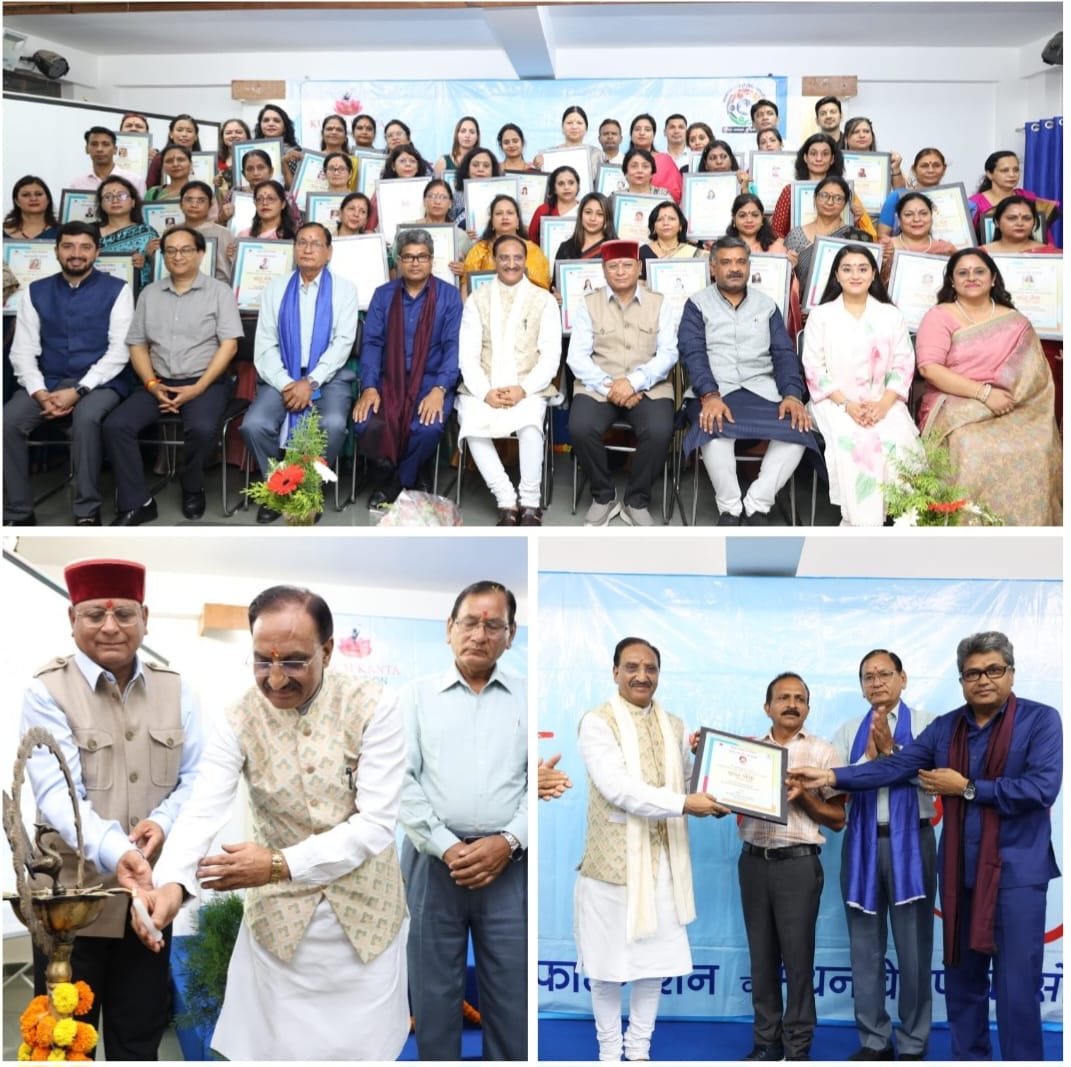 मुख्य अतिथि डॉ. रमेश पोखरियाल “निशंक” ने अपने उद्बोधन में कहा कि शिक्षक समाज की रीढ़ होते हैं, उन्हें सम्मानित करना मात्र एक औपचारिकता नहीं, बल्कि उनके योगदान को नमन करने का एक विनम्र प्रयास है.