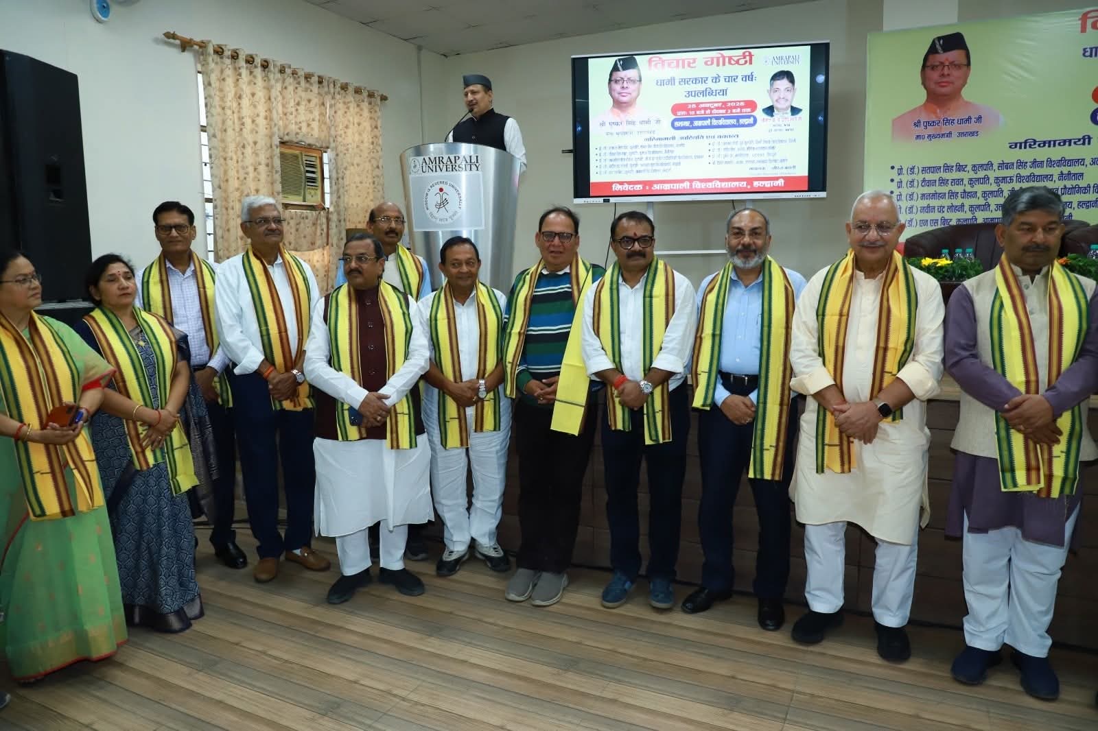 हल्द्वानी। मुख्यमंत्री पुष्कर सिंह धामी के नेतृत्व में राज्य सरकार के कार्यकाल में लिए गए निर्णयों और नीतियों पर विचार-विमर्श कार्यक्रम “धामी सरकार के चार वर्ष: उपलब्धियाँ” शीर्षक से हल्द्वानी में आयोजित किया गया। इस चर्चा में विभिन्न विश्वविद्यालयों के कुलपतियों, शिक्षाविदों एवं जनप्रतिनिधियों ने भाग लिया।