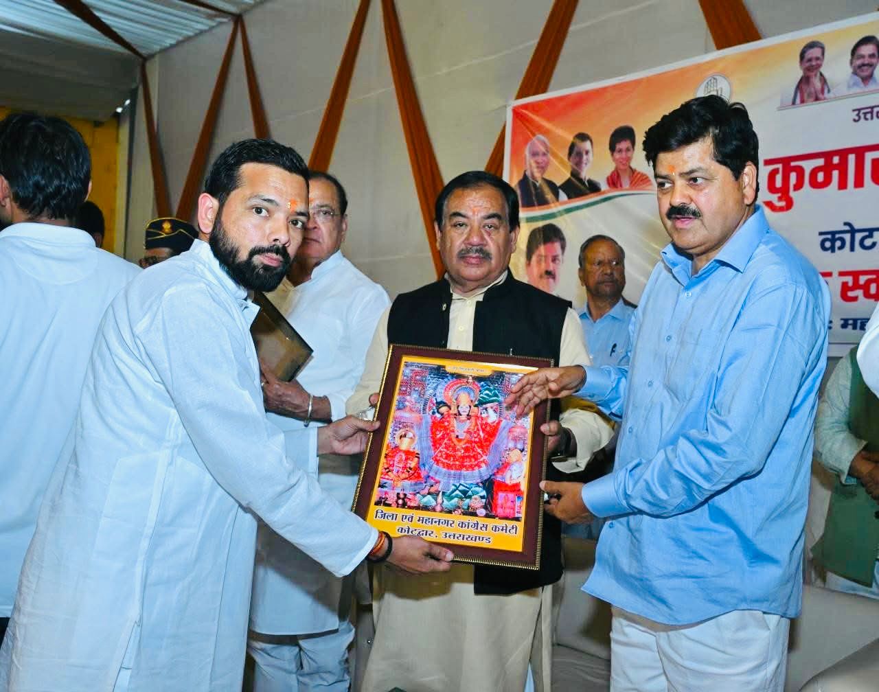 इस अवसर पर पूर्व कैबिनेट मंत्री माननीय श्री सुरेन्द्र सिंह नेगी ने भी कार्यकर्ताओं को संबोधित करते हुए कहा कि कोटद्वार की जनता आज भी विकास कार्यों को याद करती है और आने वाले समय में कांग्रेस एक मजबूत विकल्प के रूप में उभरेगी। उन्होंने कार्यकर्ताओं से आह्वान किया कि वे बूथ स्तर तक संगठन को मजबूत करें और जनता के मुद्दों को प्रमुखता से उठाएं।कार्यक्रम में प्रदेश अध्यक्ष श्री गणेश गोदियाल, नेता प्रतिपक्ष श्री यशपाल आर्य, पूर्व प्रदेश अध्यक्ष श्री प्रीतम सिंह, पूर्व महापौर श्रीमती हेमलता नेगी, प्रदेश चुनाव प्रबंधन समिति के अध्यक्ष डॉ. हरक सिंह रावत, सहप्रभारी श्री सुरेन्द्र शर्मा, श्री मनोज यादव , कोटद्वार जिलाध्यक्ष श्री विकास नेगी, महानगर अध्यक्ष श्रीमती मीना बछवाण, सहित अन्य वरिष्ठ नेताओं ने भी अपने संबोधन में पार्टी की विचारधारा को मजबूत करने और कार्यकर्ताओं को सक्रिय भूमिका निभाने के लिए प्रेरित किया। मंच संचालन पूर्व ब्लॉक प्रमुख श्रीमती गीता नेगी ने किया।