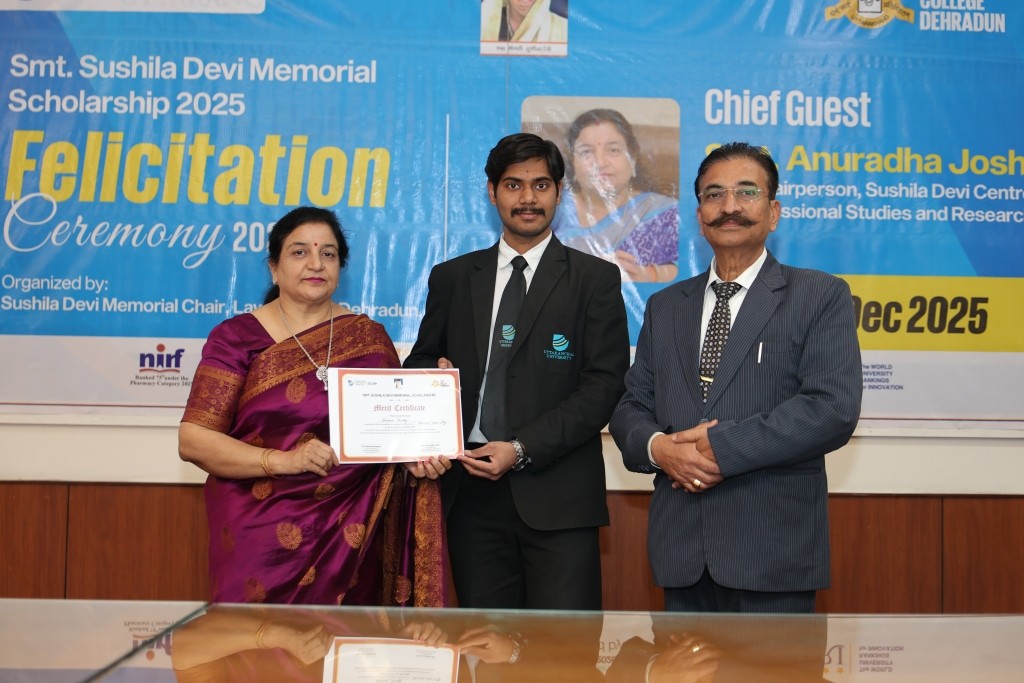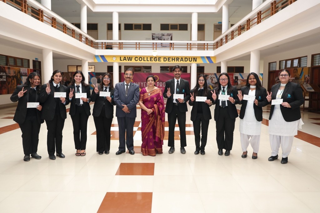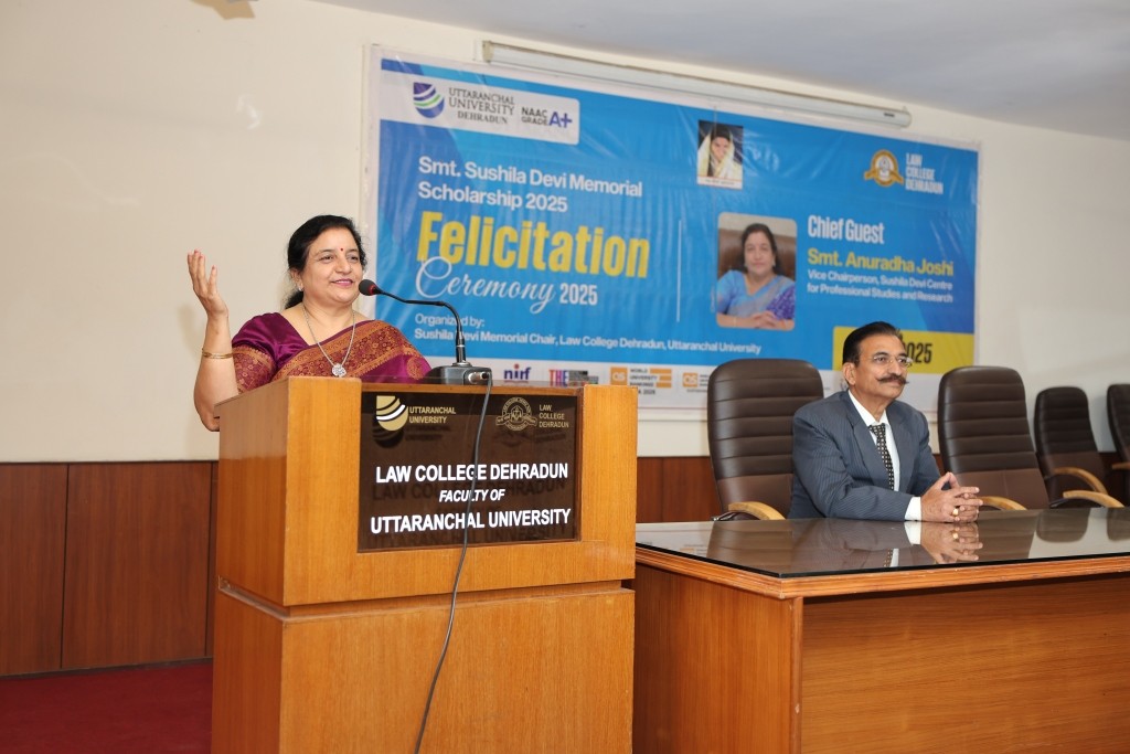 देहरादून 30 दिसम्बर। उत्तरांचल विश्वविद्यालय के लाॅ काॅलेज देहरादून में अपनी-अपनी कक्षा में सर्वाधिक अंक प्राप्त करने वाले छात्रों को सुशीला देवी मेमोरियल छात्रवृति से नवाजा गया। विश्वविद्यालय संचालन समिति की उपाध्यक्षा श्रीमती अनुराधा जोशी इस अवसर पर बतौर मुख्य अतिथि उपस्थित थी। उन्होंने छात्रों को छात्रवृति के चेक व सम्मान पत्रों से नवाजा।