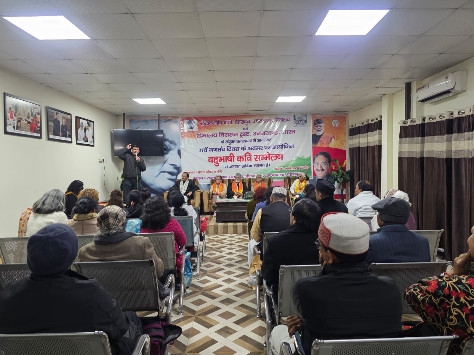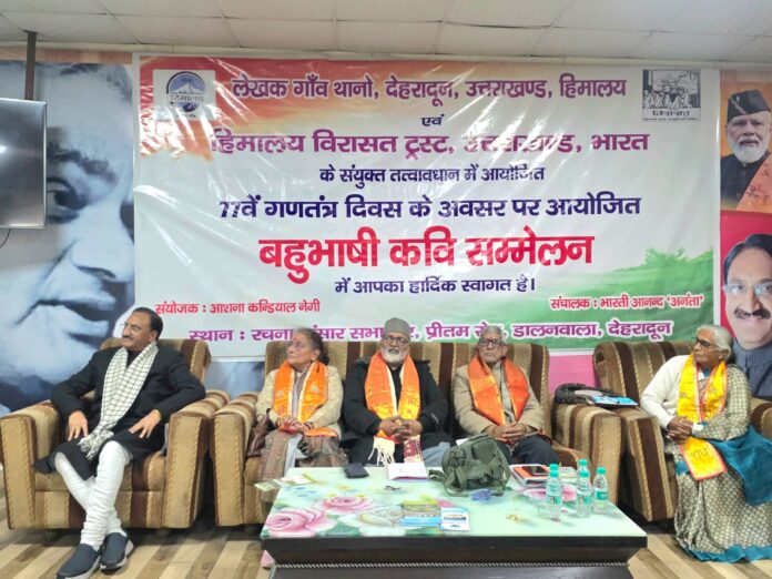 गणतंत्र दिवस की पूर्व संध्या पर लेखक गांव, देहरादून एवं हिमालय विरासत न्यास के संयुक्त तत्वावधान में एक विराट बहुभाषी कवि सम्मेलन आ आयोजन डालनवाला स्थित रचना संसार सभागार में आयोजित किया गया।