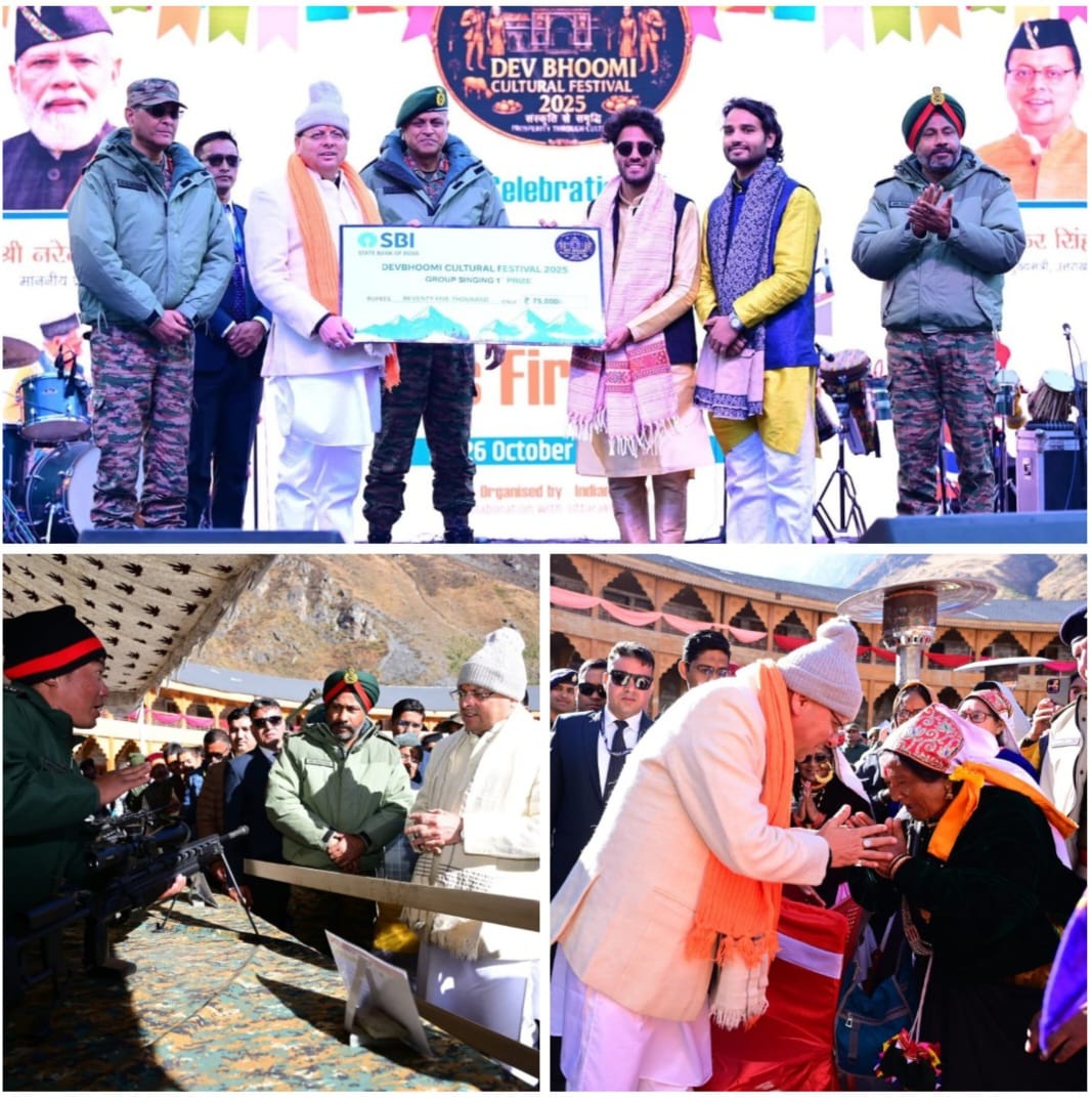 चमोली। मुख्यमंत्री पुष्कर सिंह धामी आज देश के प्रथम गाँव माणा में आयोजित दो दिवसीय “देवभूमि सांस्कृतिक महोत्सव 2025” के समापन समारोह में पहुँचे| इस आयोजन में स्थानीय समुदायों, पर्यटकों और गणमान्य अतिथियों की उत्साहपूर्ण सहभागिता देखने को मिली। महोत्सव का संचालन भारतीय सेना एवं उत्तराखंड सरकार के संयुक्त तत्वावधान में किया गया।