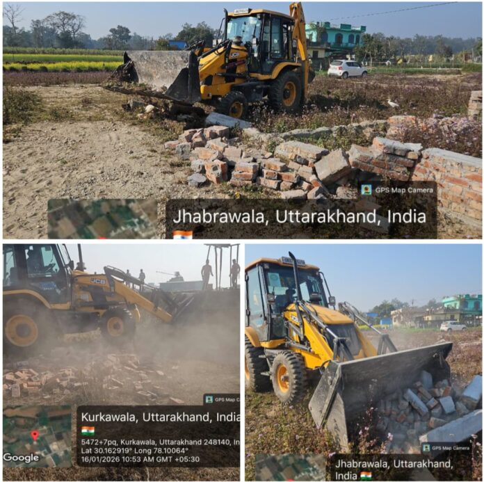 रियासत अली, मोन्टी एवं आवेद अली द्वारा कुड़कावाला मार्ग, बी.एस.एफ. कैम्प के पीछे, नकट भट्टा, डोईवाला, देहरादून में लगभग 30 बीघा क्षेत्रफल में की जा रही अवैध प्लॉटिंग पर ध्वस्तीकरण की कार्रवाई की गई। इसके अतिरिक्त दीपू रावत द्वारा झबरावाला, डोईवाला, देहरादून में लगभग 08–10 बीघा क्षेत्र में की जा रही अवैध प्लॉटिंग को भी ध्वस्त किया गया। उक्त कार्रवाई के दौरान सहायक अभियंता प्रमोद मेहरा, अवर अभियंता स्वाती कोहली, सुपरवाइजर एवं पर्याप्त पुलिस बल मौके पर उपस्थित रहा।