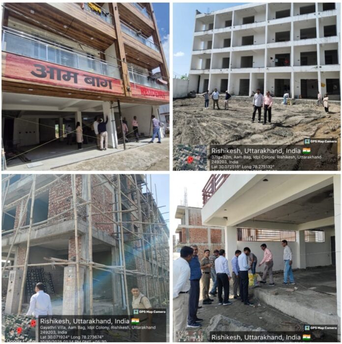 देहरादून के सुनियोजित विकास और भवन निर्माण मानकों के अनुपालन को सुनिश्चित करने के उद्देश्य से मसूरी-देहरादून विकास प्राधिकरण (एम.डी.डी.ए.) ने नियम विरुद्ध निर्माणों के विरुद्ध अपनी सख़्त नीति पर अमल तेज़ कर दिया है। इसी क्रम में आज प्राधिकरण द्वारा ऋषिकेश क्षेत्र में बड़े पैमाने पर कार्रवाई की गई, जिसमें विभिन्न स्थानों पर बिना स्वीकृति के किए गए बहुमंज़िला व्यवसायिक एवं आवासीय निर्माणों को नियमानुसार सील किया गया।