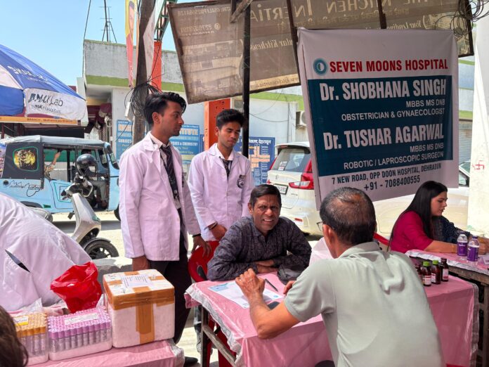 मोथरोवाला स्थित कम्युनिटी फार्मेसी में रविवार को एक विशाल निःशुल्क स्वास्थ्य जांच एवं रक्तदान शिविर का सफल आयोजन किया गया। यह शिविर सुशीला इंस्टीट्यूट ऑफ मेडिकल साइंसेज (SIMS) द्वारा नेचुरल रिसोर्स मैनेजमेंट सोसाइटी (NRMS) एवं विष्णुपुरम जनकल्याण समिति के सहयोग से आयोजित किया गया, जिसमें सेवन मून हॉस्पिटल और मैक्स लैब ने भी महत्वपूर्ण तकनीकी सहयोग प्रदान किया।