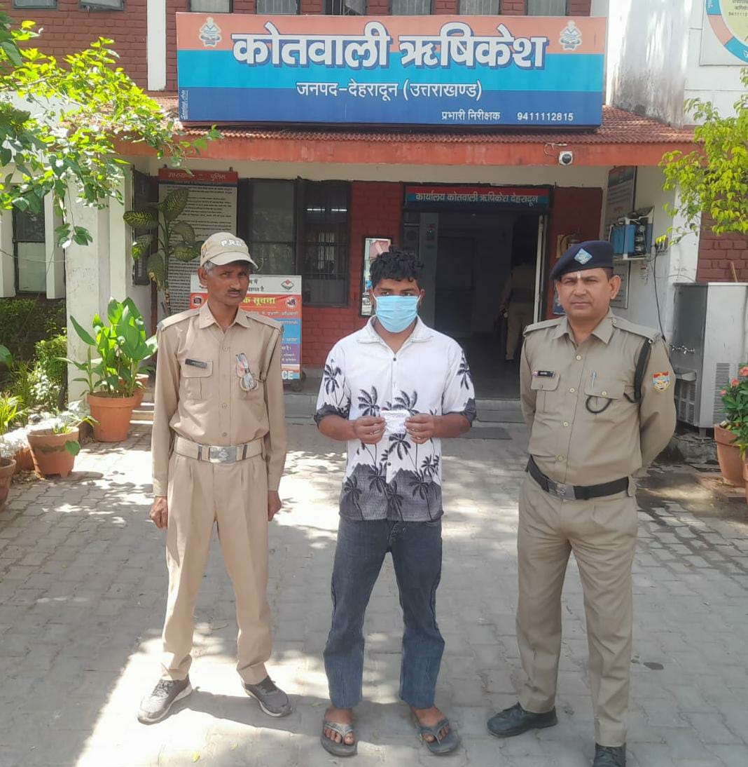 आकाश उर्फ गोलू पुत्र आनंद मणी निवासी गली न०- 05, कुम्हार बाडा, ऋषिकेश, उम्र- 23 वर्ष