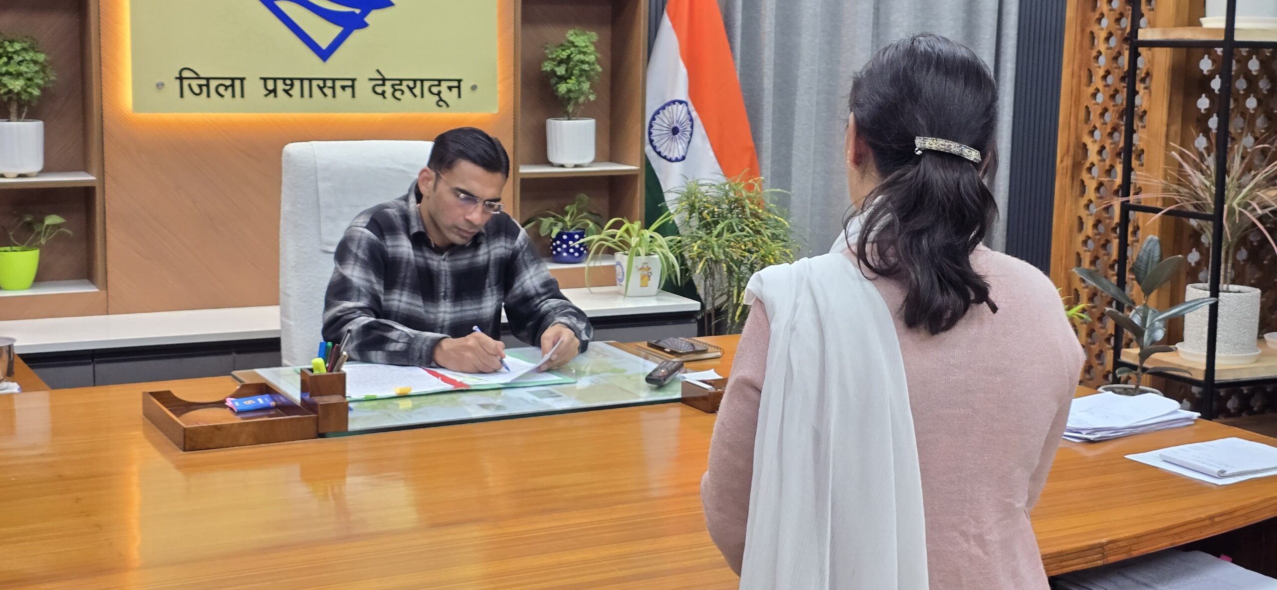 देहरादून दिनांक 11 नवम्बर 2025, (सूवि), जिलाधिकारी कार्यालय कक्ष में पति द्वारा प्रताड़ित महिला हेमलता ने पंहुच डीएम सविन बसंल से गुहार लगाई कि उनका पति अद्वैसैनिक बल में कार्यरत तथा पति रोज शराब पीकर मारपीट करता है। एक दिन पति ने उनको एवं उनकी 10 वर्षीय बेटी को जलाने तथा तेजाब डालने का प्रयास किया है। उन्होंने पति से जान की सुरक्षा तथा जीवनयापन खर्चा दिलाने की गुहार लगाई। जिलाधिकारी ने तत्काल आनलाईन प्राथिमिकी दर्ज कराते हुए प्रभारी अधिकारी कलेक्टेªट को आवश्यक कार्यवाही के निर्देश दिए।