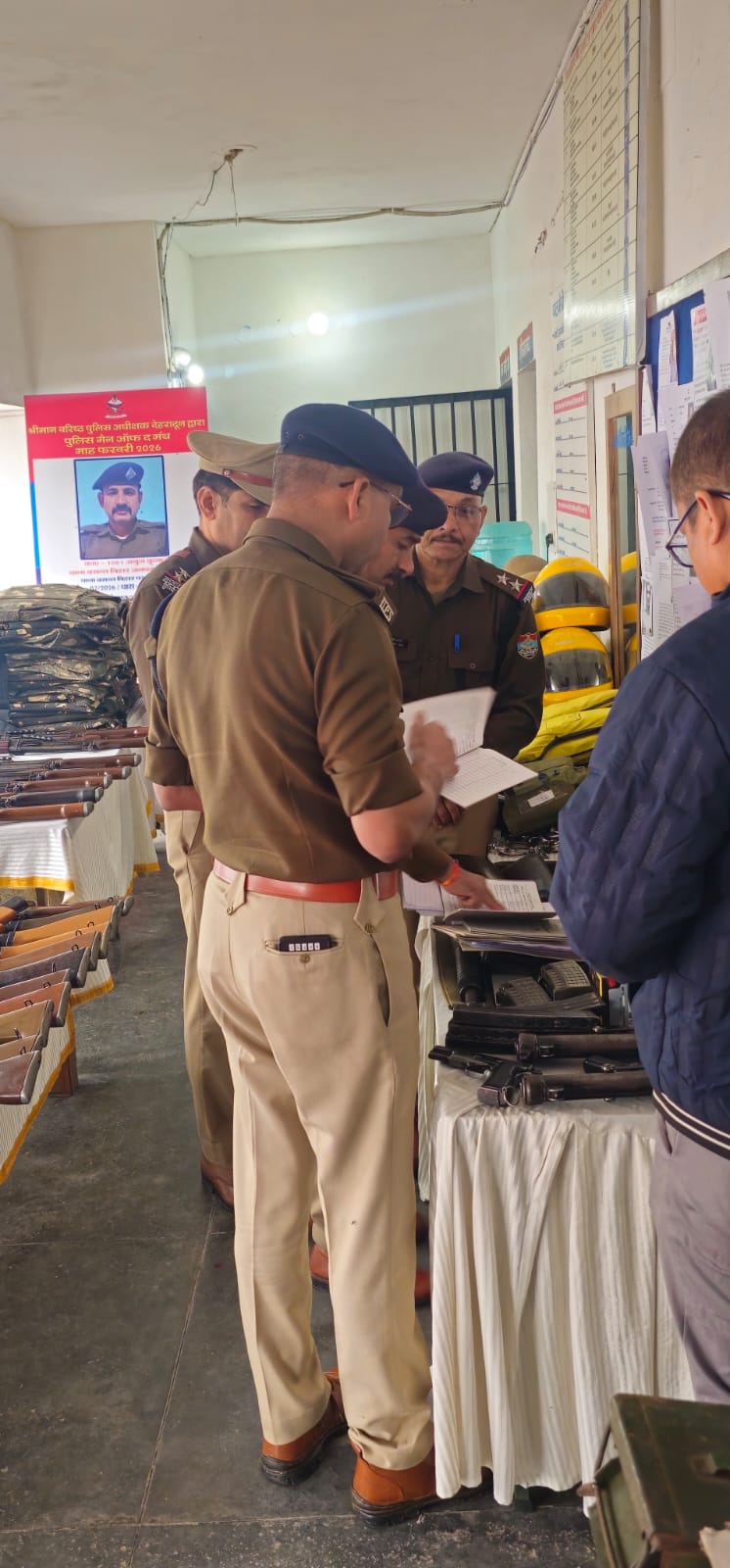 थाने पर उपलब्ध सरकारी संपत्ति व असलाह तथा दंगा नियंत्रण उपकरण , आपदा उपकरण का निरीक्षण किया गया, जिसका रखरखाव संतोषजनक पाया गया। थाने पर लंबित माल मुकदमाती, लावारिस , कुर्की आदि मालों का निरीक्षण कर उनके रखरखाव के संबंध में आवश्य निर्देश दिए गए तथा एमवी एक्ट, लावारिस व अभियोगों से संबंधित मालों का शीघ्र निस्तारण व नीलामी प्रक्रिया किये जाने हेतु मालखाना मोहर्रिर को निर्देशित किया गया। इस दौरान असलाह के खोलने और जोड़ने के संबंध में सभी उप निरीक्षक एवं मौजूद कर्म०गणों से जानकारी कर उनका अभ्यास करवाया गया।