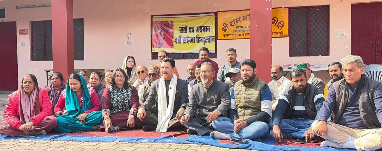 इससे पूर्व कांग्रेस कार्यकर्ताओं ने राम मंदिर में पूजा अर्चना व आरती कर उत्तरप्रदेश सरकार की सद्बुद्धि के लिए प्रार्थना की व तत्पश्चात उपवास में बैठ कर भजन कीर्तन व हरि नाम जाप किया।