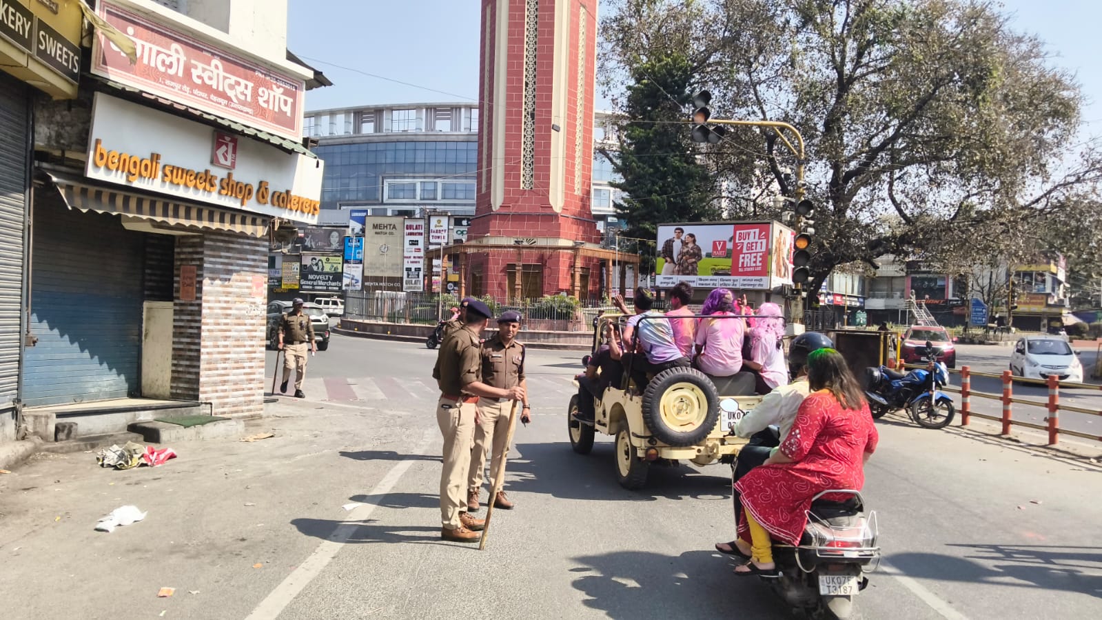 रंगो और खुशी के त्योहार को हर्षोल्लास पूर्वक मनाने तथा सकुशल सम्पन्न कराये जाने हेतु एसएसपी दून द्वारा सभी अधीनस्थो को अपने-अपने क्षेत्रों मे सुरक्षा एवं शान्ति व्यवस्था बनाये रखने तथा आपसी सौहार्द खराब करने व अराजकता फैलाने का प्रयास करने वाले व्यक्तियों पर सतर्क दृष्टि रखते हुए उन्हें निरूद्ध किये जाने हेतु निर्देशित किया गया है। जिसके अनुपालन में दून पुलिस द्वारा जनपद के चप्पे-चप्पे पर पूर्ण मुस्तैदी के साथ तैनात रहते हुए होली के पावन पर्व को सकुशल सम्पन्न कराया गया। पुलिस की तत्परता से किसी भी क्षेत्र मे किसी भी प्रकार के हुडदंग की कोई शिकायत प्राप्त नहीं हुई । दून पुलिस कप्तान के निर्देशों में दून पुलिस द्वारा की गई चाक चौबन्द सुरक्षा व्यवस्था की सभी संभ्रान्त व्यक्तियों तथा आमजनमानस द्वारा प्रशंसा करते हुए दून पुलिस का आभार व्यक्त किया गया।