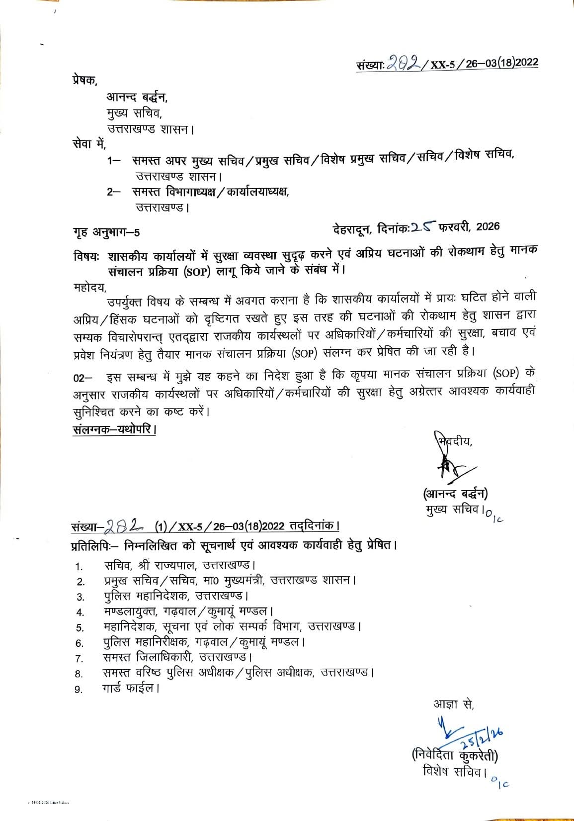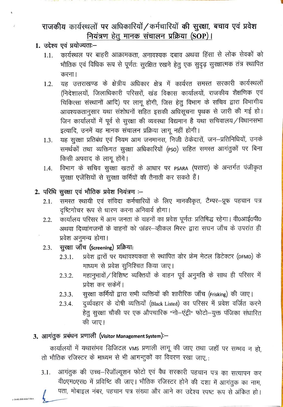 प्रदेश में हाल के दिनों में सरकारी कार्यालयों में हुए अधिकारियों एवं कर्मचारियों पर हमले को लेकर आखिरकार सरकार ने SOP जारी कर दी है। अब शासकीय कार्यालय में सुरक्षा व्यवस्था सुदृढ़ करने एवं अप्रिय घटनाओं की रोकथाम हेतु मानक संचालन प्रक्रिया यानी SOP जारी कर दी गई है।