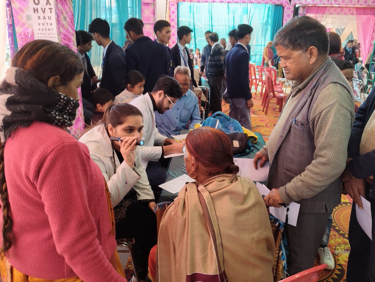 शिविर में कैसर विशेषज्ञ डॉ पल्लवी कौल, न्यूरोलोजिस्ट डॉ. शीतल शर्मा, ह्दय रोग विशेषज्ञ डॉ. नितिन, आईवीएफ, स्त्री एवम् प्रसूति रोग विशेषज्ञ डॉ दिव्या अग्रवाल, मेडिसिन विभाग से फिजीशियन डॉ यश अग्रवाल, डाॅ हिमांशु कुमार, शिशु एवम् बाल रोग विशेषज्ञ डॉ ऋषभ, नाक कान गला रोग विशेषज्ञ डॉ अरुण मनहास, नेत्र रोग विभाग से डॉ शिवानी यादव, मनोरोग विभाग से डॉ अर्पिता नेगी, हड्डी रोग विभाग से डॉ मीतुल गुप्ता, सर्जरी विभाग से डाॅ सुखविन्दर सिंह, दंत रोग विभाग से डॉ कनुप्रिया प्रालियान, फिजियोथैरिपिस्ट डॉ रविन्द्र सिंह, डाॅ रजनीश चैधरी और डाॅ अतीव सिंह, त्वचा एवम् यौन रोग विभाग से डाॅ चितम्बरा जोशी ने रोगियों को चिकित्सकीय परामर्श दिया।