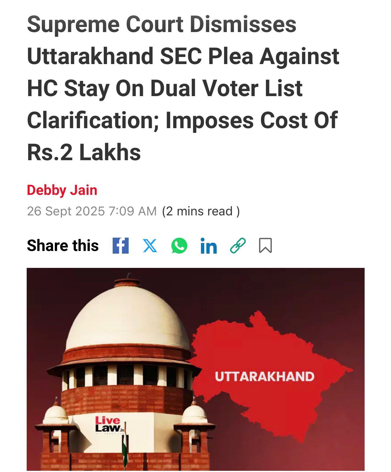 सुप्रीम कोर्ट ने आज उत्तराखंड राज्य चुनाव आयोग पर दो लाख रुपये का जुर्माना लगा दिया!