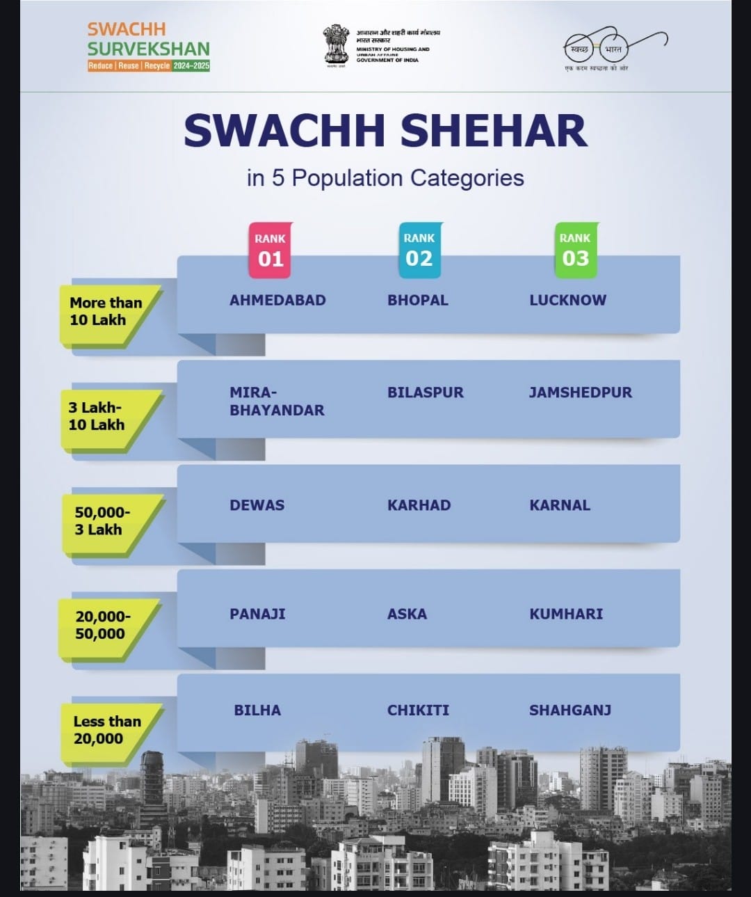 उन्होंन कहा कि स्वच्छ सर्वेक्षण 2024–25 के तहत देशभर के शहरों को पाँच जनसंख्या श्रेणियों में विभाजित कर सम्मानित किया गया जिसमे 10 लाख से अधिक, 3–10 लाख, 50,000–3 लाख, 20,000–50,000 और 20,000 से कम जनसंख्या वाले शहर शामिली हुए। उन्होंने दुख जताया कि जहां इंदौर, सूरत, नोएडा, चंडीगढ़, लखनऊ, उज्जैन, मैसूर, अंबिकापुर, तिरुपति और लोनावाला जैसे कई अन्य शहर लगातार मिसाल पेश कर रहे हैं, वहीं देहरादून, हरिद्वार, रुड़की, ऋषिकेश, हल्द्वानी और उत्तराखंड के अन्य सभी शहर लगातार सूची से बाहर हैं।