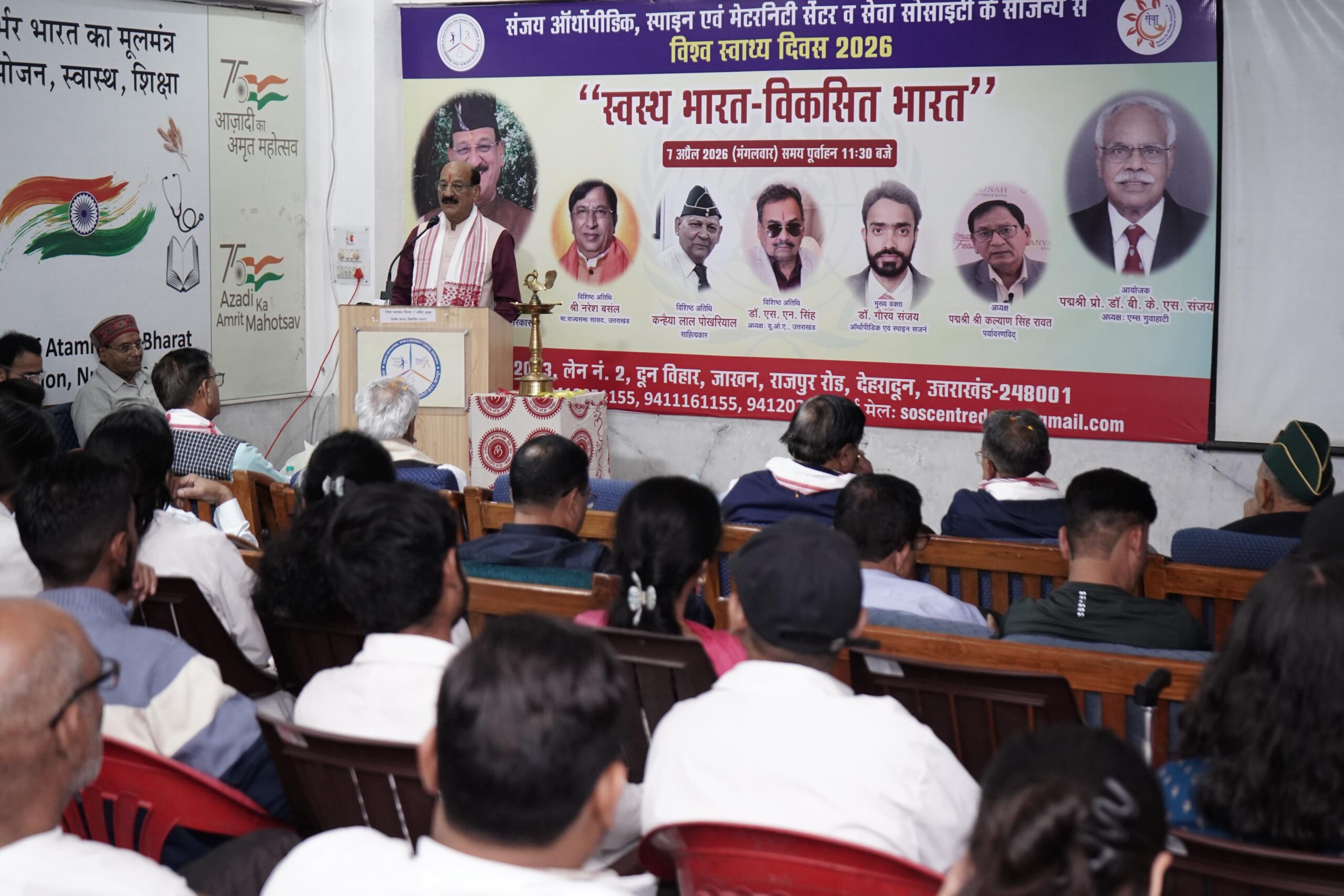 विश्व स्वास्थ्य दिवस के अवसर पर दून विहार, जाखन में संजय ऑर्थोपीडिक, स्पाइन एवं मैटरनिटी सेंटर एवं सेवा सोसाइटी द्वारा आयोजित “स्वस्थ भारत – विकसित भारत” कार्यक्रम में प्रदेश के स्वास्थ्य मंत्री श्री सुबोध उनियाल बतौर मुख्य अतिथि सम्मिलित हुए और कार्यक्रम का शुभारंभ किया।