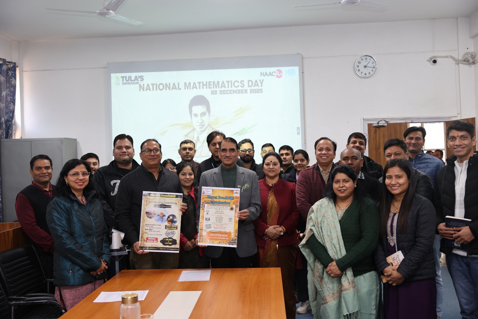 तुलाज़ इंस्टीट्यूट, देहरादून में विद्या भारती उच्च शिक्षा संस्थान, उत्तराखंड के अध्यक्ष, अंतरराष्ट्रीय ख्याति प्राप्त भौतिक शास्त्री तथा उत्तराखंड लोक से आयोग के पूर्व अध्यक्ष*प्रोफेसर जगमोहन सिंह राणा** के आगमन के अवसर पर महत्वपूर्ण शैक्षणिक गतिविधियाँ संपन्न हुईं। इस अवसर पर उन्होंने भारतीय ज्ञान परंपरा (Indian Knowledge System–IKS) विषय पर संकाय सदस्यों के साथ विस्तृत संवाद किया तथा **भारत बोध–IKS राष्ट्रीय परीक्षा 2026** के पोस्टर का औपचारिक विमोचन किया। इसी क्रम में राष्ट्रीय गणित दिवस का भी आयोजन किया गया।