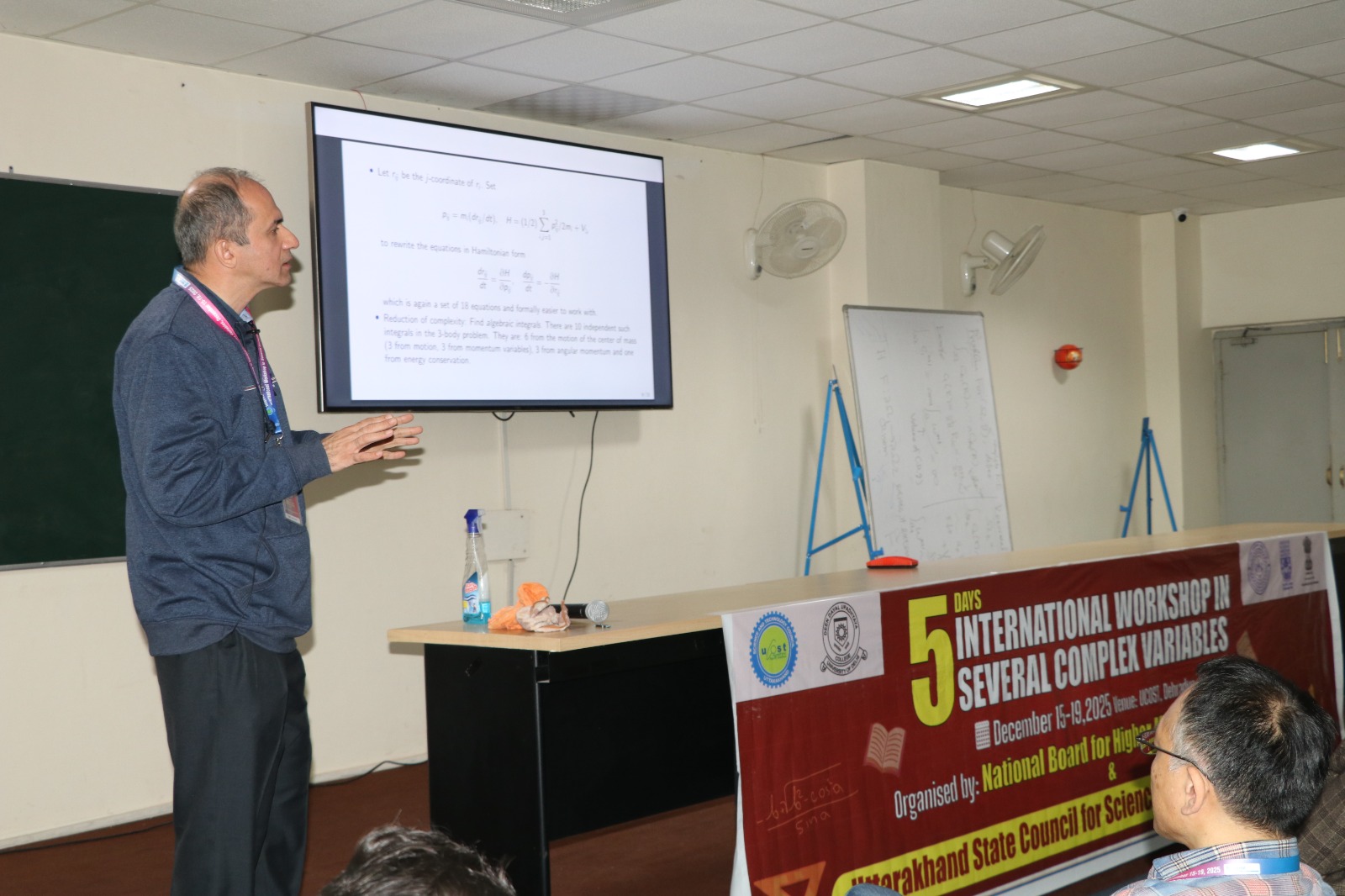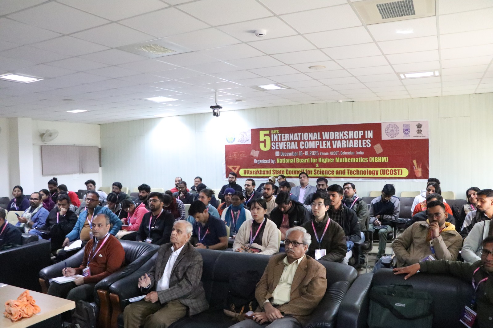 उत्तराखंड राज्य विज्ञान एवं प्रौद्योगिकी परिषद (यूकॉस्ट), देहरादून द्वारा नेशनल बोर्ड फॉर हायर मैथमेटिक्स, पुणे के संयुक्त तत्वाधान में आज दिनाक 15 नवंबर, 2025 से पाँच दिवसीय अंतरराष्ट्रीय कार्यशाला “सेवेरल कॉम्प्लेक्स वैरिएबल्स” का आयोजन गया। यह कार्यशाला गणितीय विश्लेषण के एक अत्यंत महत्वपूर्ण एवं आधुनिक क्षेत्र पर केंद्रित है।