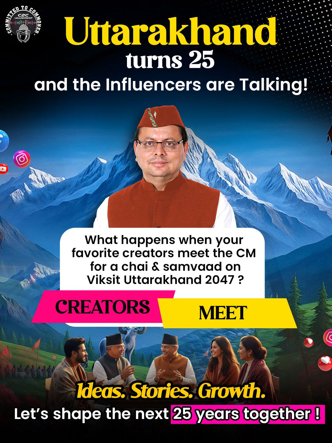 उत्तराखण्ड के 25 वर्ष पूर्ण होने पर C2C द्वारा 11 नवम्बर को होगा ” Samvaad with CM” कार्यक्रम का आयोजन: मुख्यमंत्री करेंगे इन्फ्लुएंसर्स से संवाद