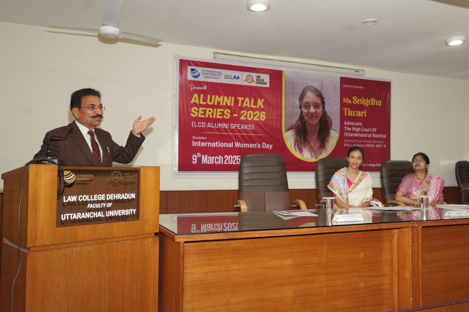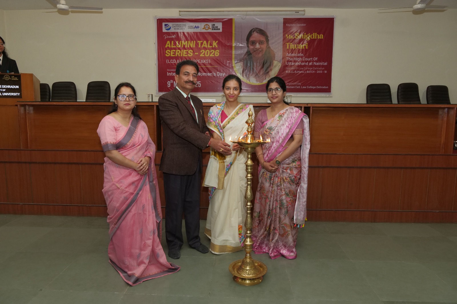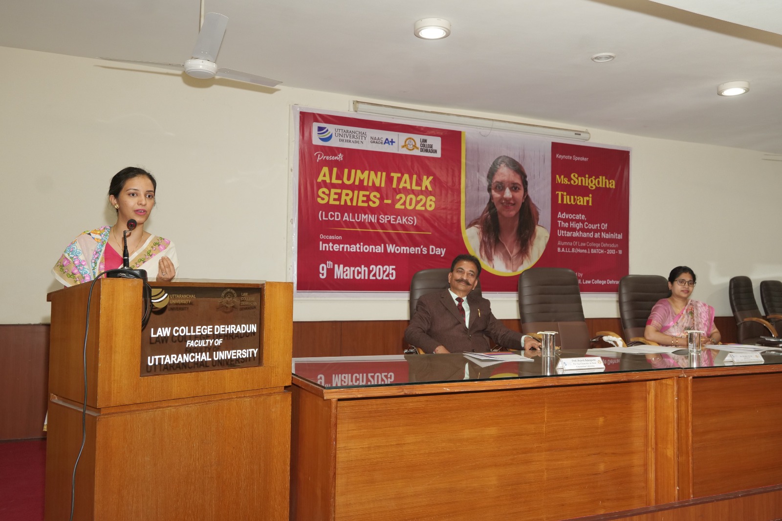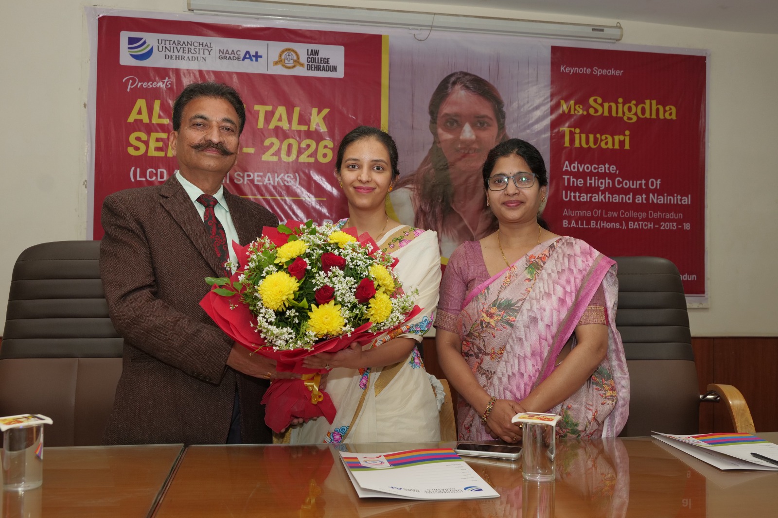 उत्तरांचल विश्वविद्यालय के लॉ कॉलेज, देहरादून में आज कॉलेज की पूर्व छात्रा एवं नैनीताल हाईकोर्ट की अधिवक्ता स्निग्धा तिवारी को एलुमनाई टॉक सीरीज़ 2026 में मुख्य वक्ता के रूप में आमंत्रित किया गया।