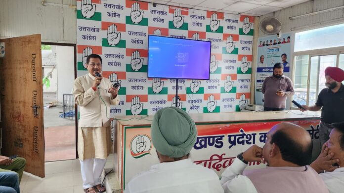 देहरादून: लोक सभा में विपक्ष के नेता राहुल गांधी द्वारा कर्नाटका सेंट्रल की लोक सभा सीट की एक विधानसभा की वोटर लिस्ट में लोक सभा चुनाव में की गई भरी हेरा फेरी के बरीं सघन जांच के बाद जो देश के सामने लाइव प्रेस करके खुलासा किया उसको आज प्रदेश कांग्रेस मुख्यालय में प्रदेश कांग्रेस अध्यक्ष करण माहरा, पूर्व अध्यक्ष व पूर्व नेता प्रतिपक्ष प्रीतम सिंह, अखिल भारतीय कांग्रेस कमेटी के सचिव व मंगलौर के विधायक काज़ी निजामुद्दीन, विधायक ममता राकेश, विधायक फुरकान अहमद, विधायक रवि बहादुर , पूर्व विधायक जोत सिंह गुंसोला, प्रदेश कोषाध्यक्ष आयरेंद्र शर्मा सहित अनेक प्रदेश पदाधिकारी व पार्टी के वरिष्ठ नेताओं के सामने बड़े स्क्रीन पर दिखाया गया। श्री राहुल गांधी ने हिंदी व अंग्रेजी में विस्तार से कर्नाटका के बेंगलुरु सेंट्रल लोकसभा छेत्र की साल 2024 लोकसभा चुनाव में हुए चुनाव की बारीक जांच की और पाया कि इस लोकसभा में कांग्रेस केवल 32 हजार वोटों से हार गई जबकि इसकी एक विधानसभा महादेवपुरा में भाजपा को एक लाख चौदह हजार वोटों की बढ़त मिली। इस पर श्री राहुल गांधी ने कहा हमने अपनी जांच शुरू की, बेंगलुरु सेंट्रल लोकसभा सीट की हार की जांच की गई खासकर महादेवपुरा विधानसभा में। यहां से बीजेपी को 1.14 लाख की लीड मिली, जबकि पूरे लोकसभा क्षेत्र में कांग्रेस सिर्फ 32,000 वोट से हारी। 7 फीट ऊंचे वोटर लिस्ट ढेर से 1 लाख से ज्यादा वोट चोरी पकड़ी गई। कांग्रेस नेता ने कहा कि वोट चोरी के 5 प्रकार हमने निकाले जिसके बारे में चुनाव आयोग से हमारे पांच सवाल हैं जिसका जवाब हम और पूरा देश जानना चाहता है।